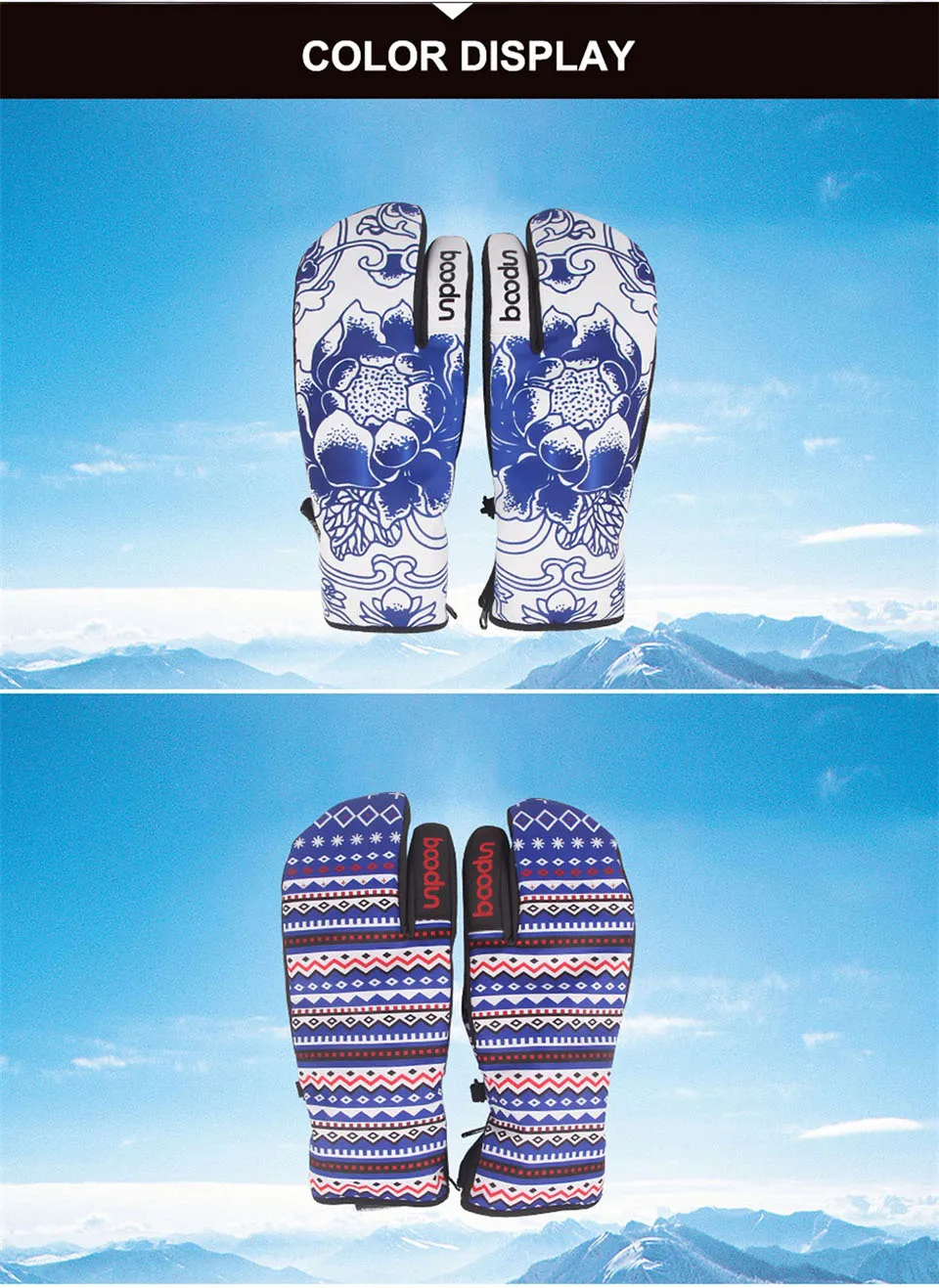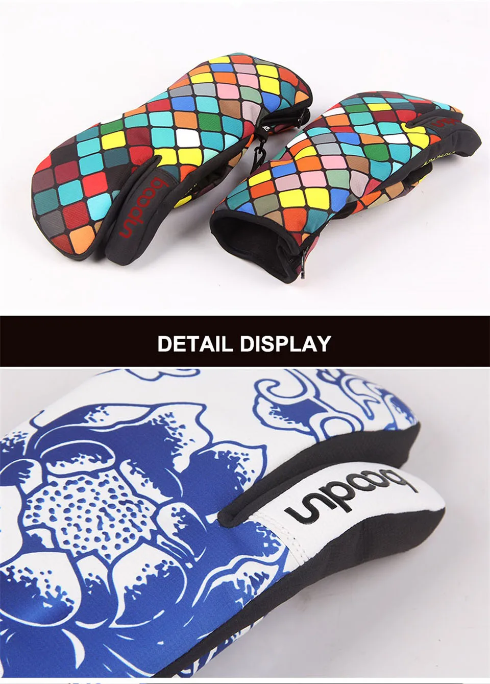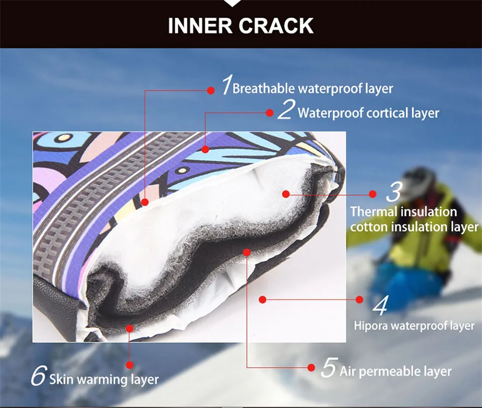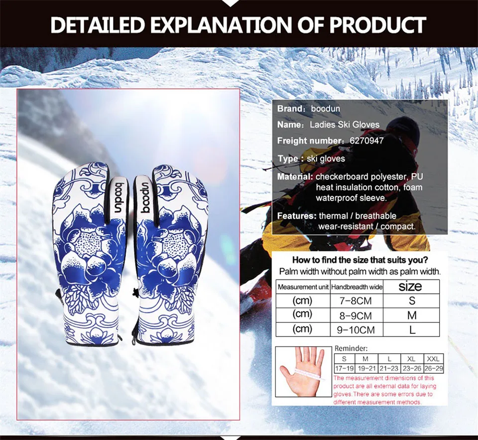 Зимние перчатки Boodun для сноуборда, лыжные перчатки, ветрозащитные водонепроницаемые нескользящие перчатки для катания на лыжах, хлопковые теплые варежки