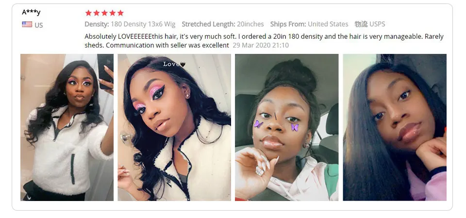 Быстрая доставка, внимательный продавец и отзывчивый по сообщению. Волосы прекрасного качества, они блестящие и шелковистые. Я очень рекомендую этого продавца и его продукцию. Я полностью удовлетворен своей покупкой. На данный момент нет выпадения волос, но чтобы увидеть со временем.