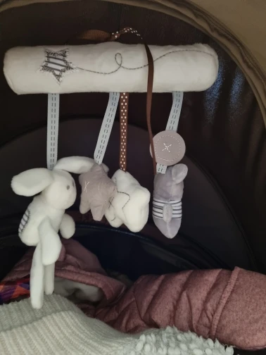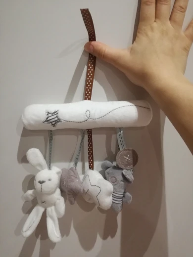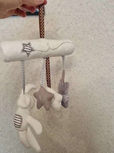 приятный мини мобиль. заяц музыкальный, белая звездочка пищит, а мишка приятно шумит как погремушка. В целом замечательный ансамбль)
