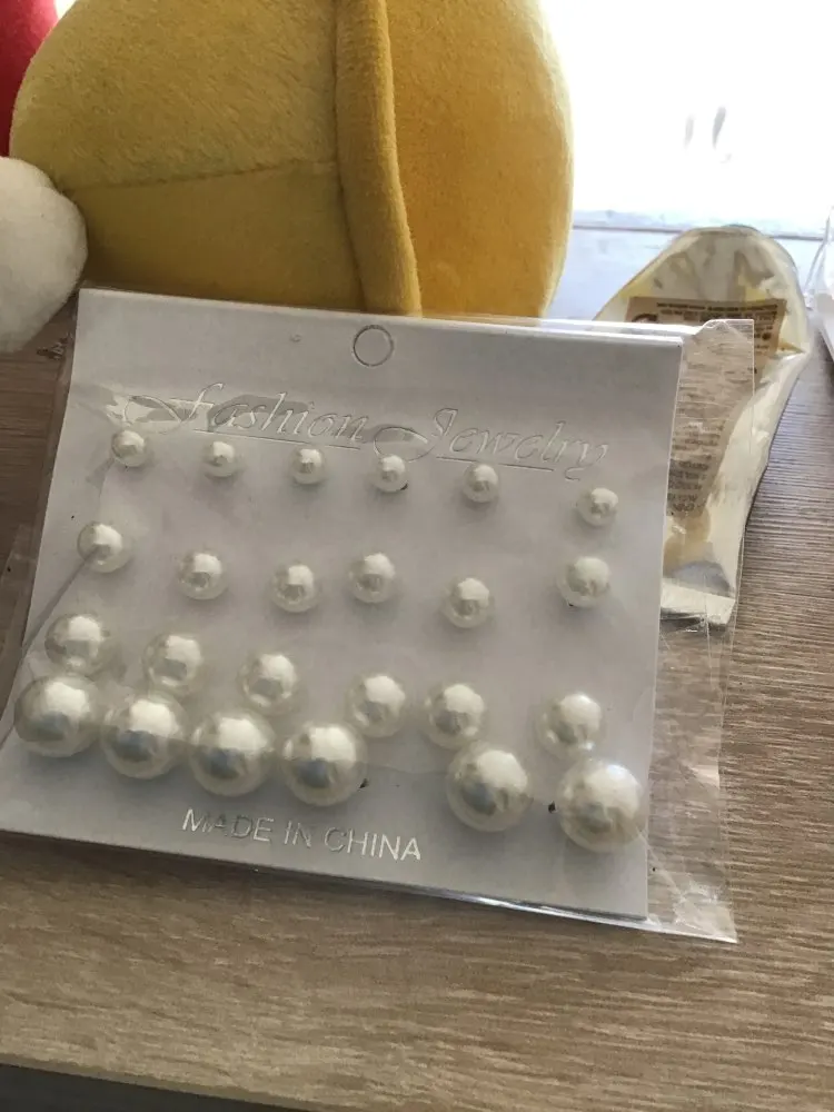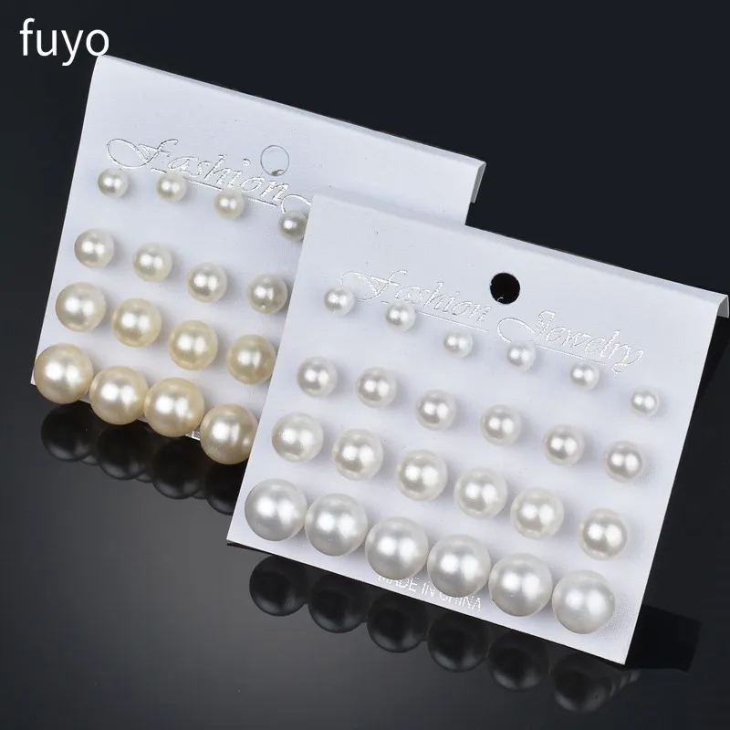 Серьги-гвоздики белые с имитацией жемчуга, 12 парткомпл., Комплект сережек для женщин