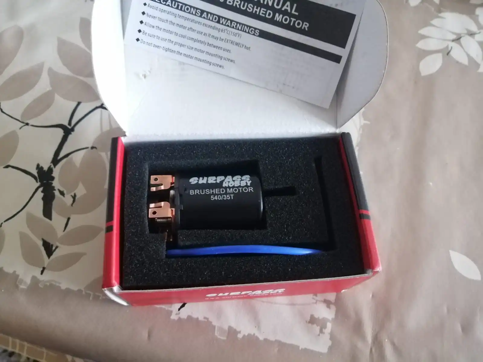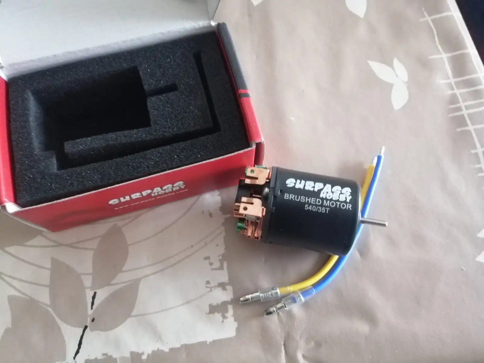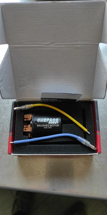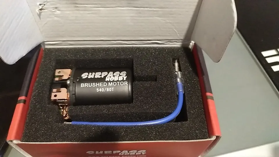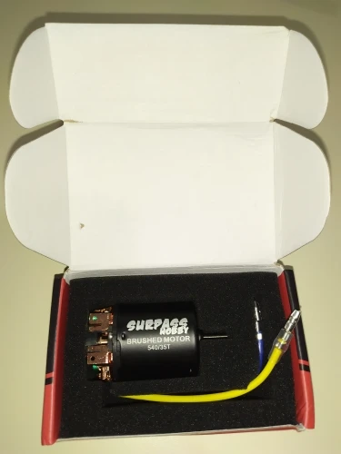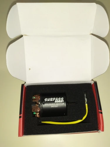 хороший мотор, упаковка заводская коробка. провода отдельно, паять самому. корпус почти герметичный, за исключением отверстий небольших под вентиляцию. для трофи 55Т в самый раз ! щетки можно менять. отправлял очень долго
