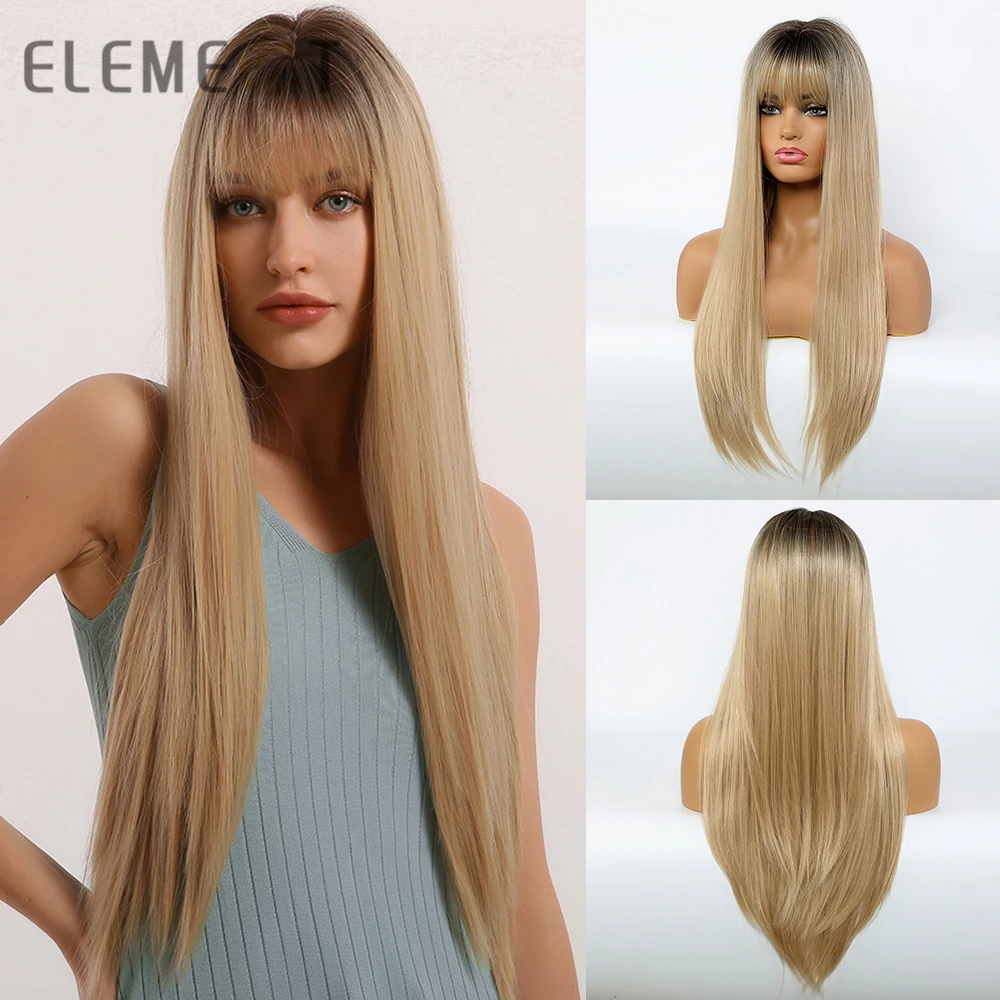 Парик женский, длинный светильник светло-каштановый, светлый, с челкой, термостойкий, для косплея