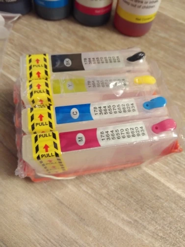 Посылка шла 2,5 месяца, упаковано хорошо, картриджи подошли,принтер принял,печатает отвратительно,чёрный цвет всё залили,цветные картриджи плохо пропечатывают, к покупке не рекомендую,зря потратил деньги.