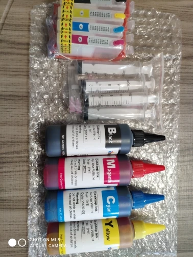 Доставка до Саратова месяц. На HP 3070a подошли, но качество катриджей, точнее их герметичности, оставляет желать лучшего. Заправляю полностью, на следующий день синего и желтого цвета нету. На черный катридж принтер постоянно ругается, либо вообще перестает видеть его. Краски с заправочными шприцами в комплекте хорошие, поэтому три звезды, а не одна.