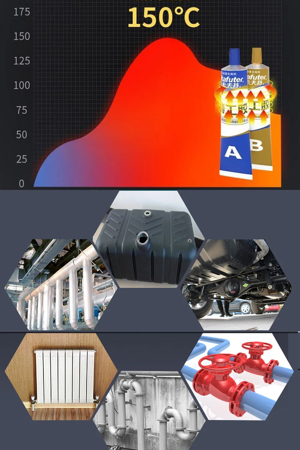 Высокотемпературный клей 100 г AB, клей для ремонта металла, чугуна, стали, тройной водонепроницаемый прозрачный Быстросохнущий