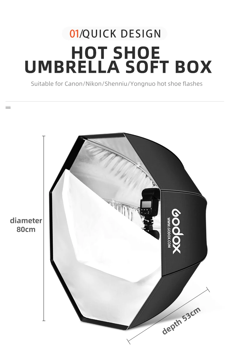 Godox портативный восьмиугольный софтбокс-отражатель 80 см с сеткой сотовый софтбокс для TT600 TT685 V860II Flash