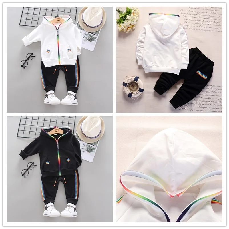 Спортивный костюм для мальчиков и девочек, хлопковый Повседневный Спортивный костюм на молнии, штаны, 2 шт.компл., детская спортивная одежда для младенцев, весна 2021