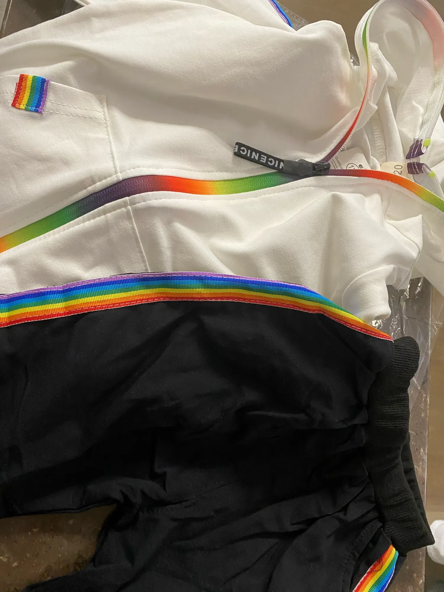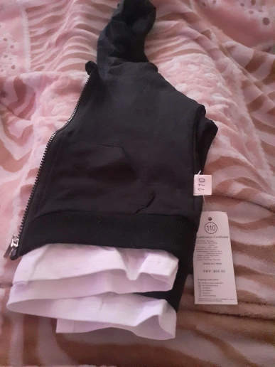 Комплект из мягкого хлопка; Очень симпатичная одежда: фуфайка имеет внешний край, изображающий одну футболку ниже. Прибыло в течение 2 недель