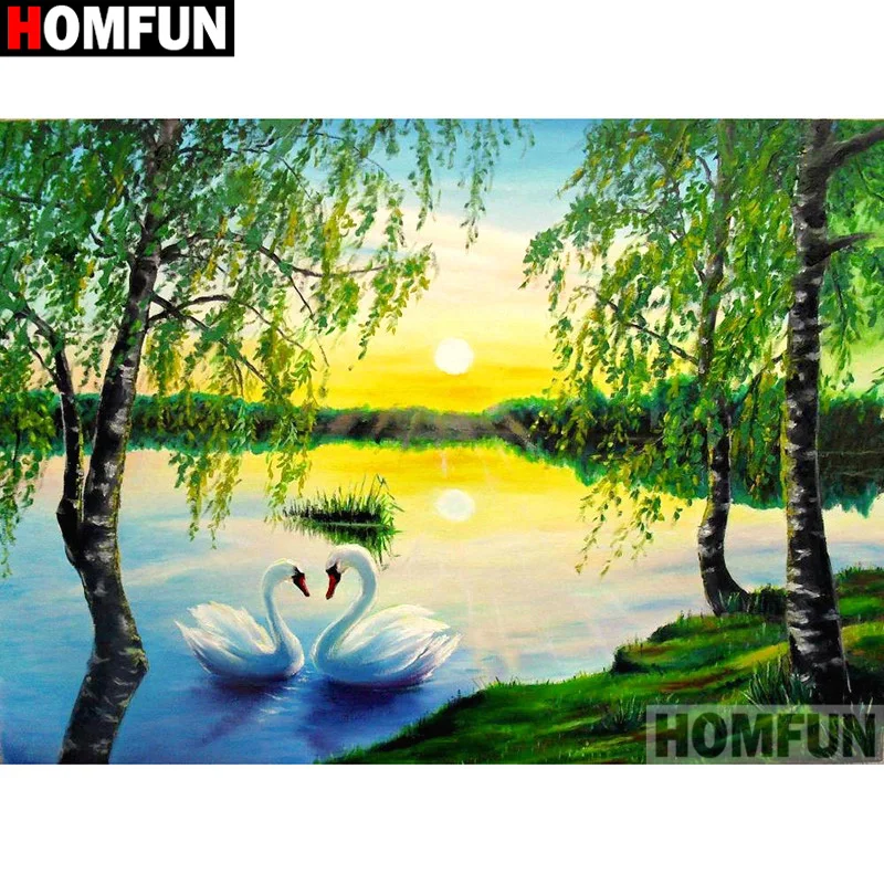 Алмазная 5D картина HOMFUN A16866 Лебедь, полноразмернаякруглая вышивка, для творчества, сделай сам, вышивка крестиком, домашний декор, подарок