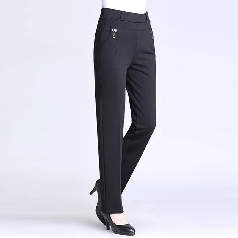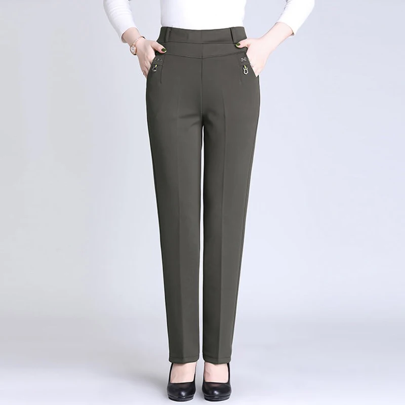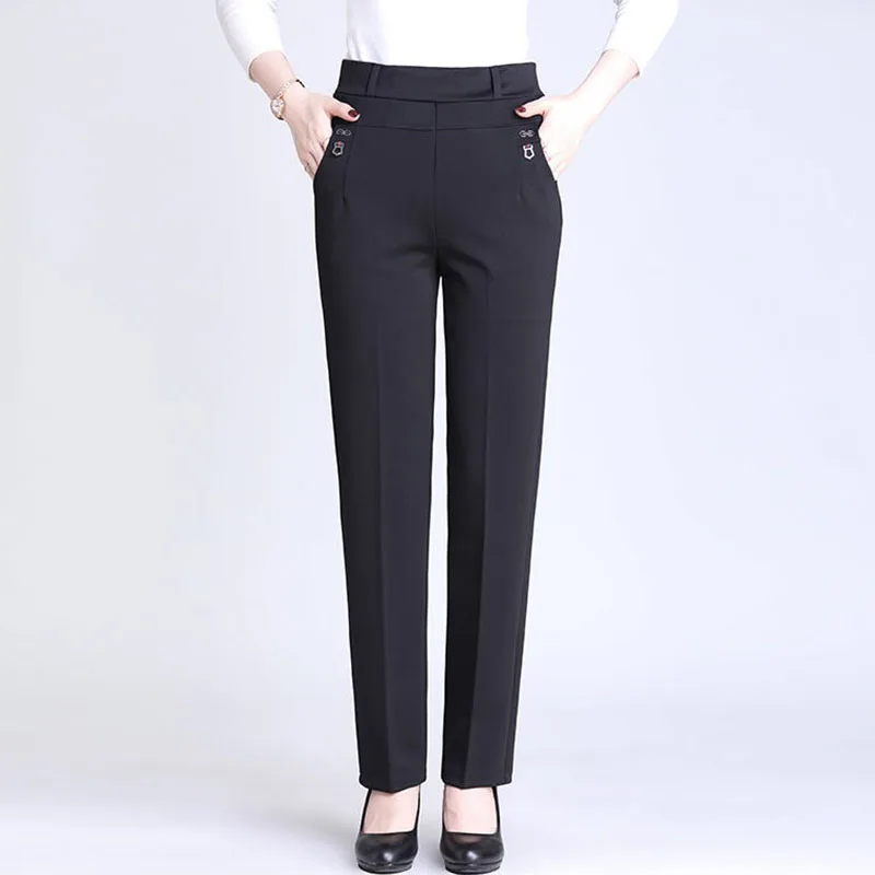 Размера плюс 5XL плюс бархатные брюки для мам 2021 однотонные повседневные женские брюки с высокой талией эластичные свободные прямые Atumn зимние брюки