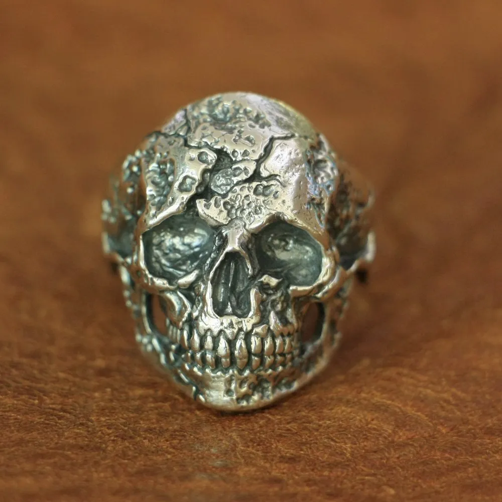 Кольцо мужское из серебра 925 пробы, раненый череп, байкер, панк, TA134, размер США 7 13