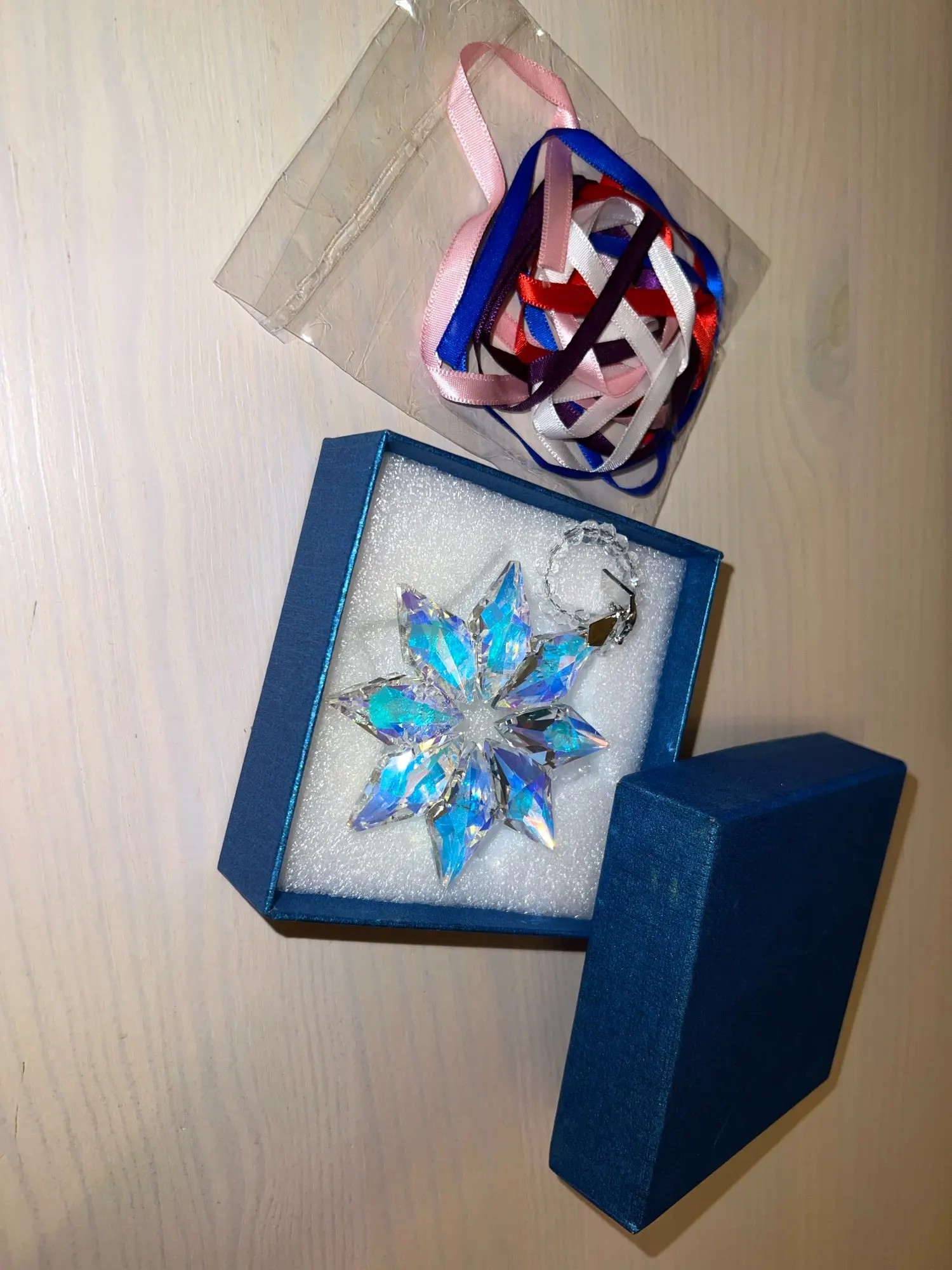 Пришло недели за две в пункт выдачи в Оренбургской области. Сняла звезду за то, что есть мелкие потертости и грязные отпечатки с одной стороны звезды, которые не удалось ничем отмыть. С другой стороны все гладко, но уже не подарочный вид. Звезда/снежинка очень красивая, сколов нет. Привлекает (и отвлекает) внимание, пускает солнечных «зайцев», на кочках мотается сильно, поэтому буду использовать для декора в доме, а не в машине. Пришла обернутой в пленку и в коробочке с разноцветными лентами и красивой ниткой из прозрачных бусинок. Глаз радует :,>