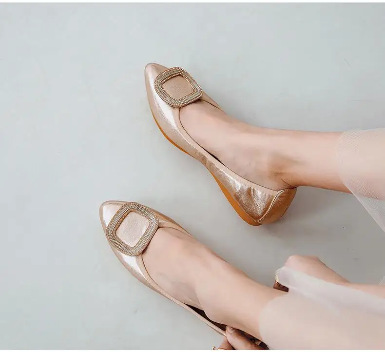 Роскошные женские повседневные Мокасины на плоской подошве, модные лоферы с металлическим украшением и острым носком, женские туфли без шнуровки 34-41