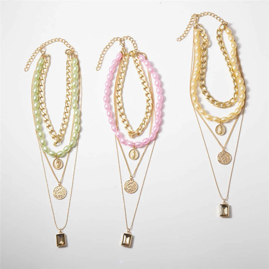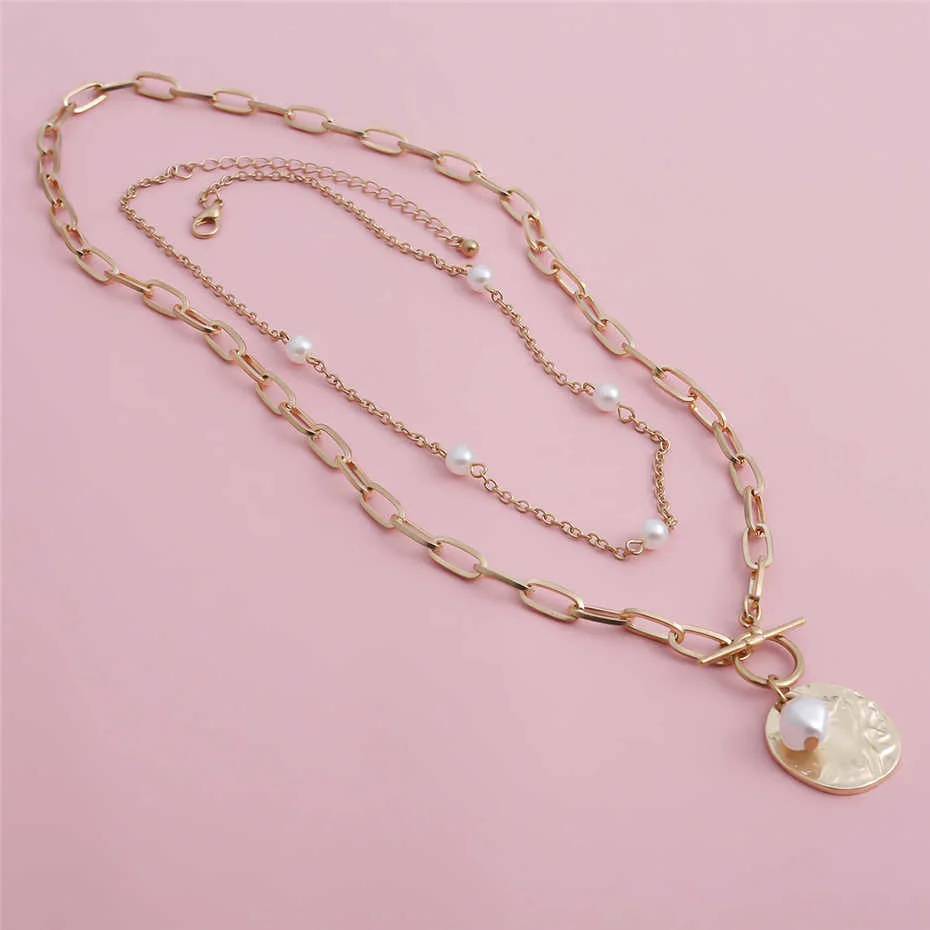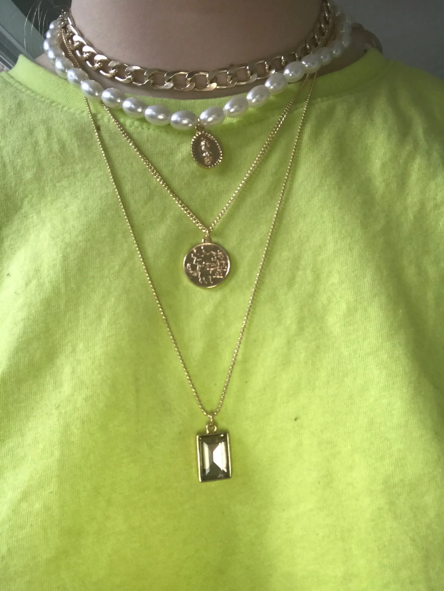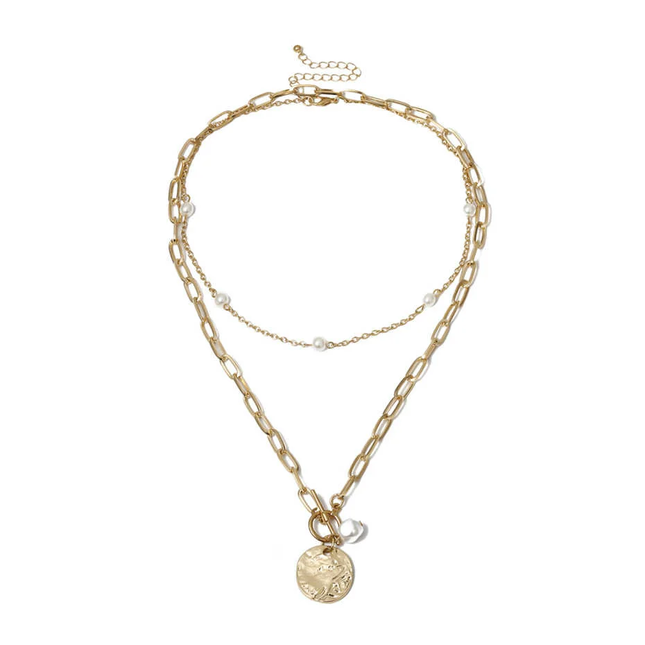 Ожерелье-чокер женское многослойное с жемчугом и монетами