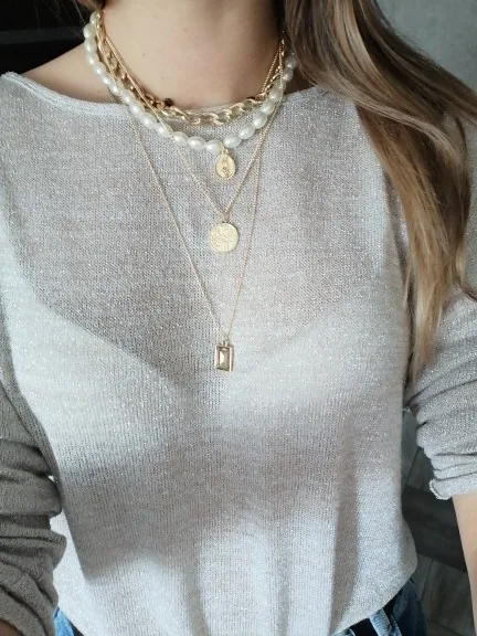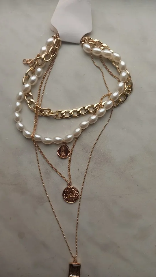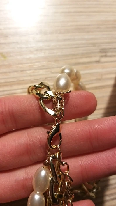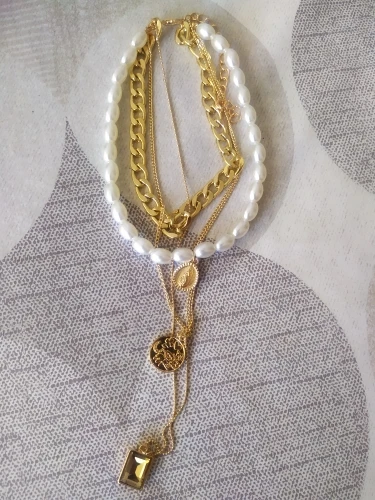 Красивая, стильная безделушка, дёшево переливается на солнце, видно, что Китай очень. Цепи не пластик, легкий сплав какой-то, жемчуг - пластик. Носить вряд ли буду, может быть в повседневку редко, под пиджак. На мою широкую шею прям впритык, на последнее колечко пришлось пристёгивать, на одежду прям туговато, на голую шею - нормально. До ПК дошло ровно месяц, кинули в почтовый ящик. Только достала из упаковки, самая длинная цепочка с кулоном оторвалась (уже была порвана), я даже в руки взять не успела, а оно отвалилось:) сразу открыла спор, часть денег вернули. Может просто мне так не повезло) но я оторвала эту длинную цепочку( там достаточно было легонько потянуть) и выкинула ее. Ничем без нее не хуже. В общем, если хотите и вам нравится - заказывайте смело, прод честный, алик возвращает деньги сразу, мне на сл день пришли) к продавцу претензий не имею) я знала, что заказываю)