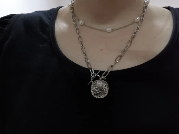 Ну за свою цену отлично, хотя цепочка перекручена и на жемчужной нити кулон висит не симметрично. Общая картинка красивая и смотрится цепочка очень стильно!