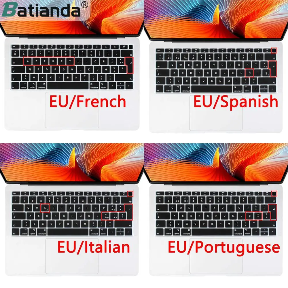 Португальский клавиатура наклейки Air 13,3 дюймов евро раскладка Мягкая силиконовая клавиатура крышка для Apple MacBook New Air 13 2019 2018 A1932