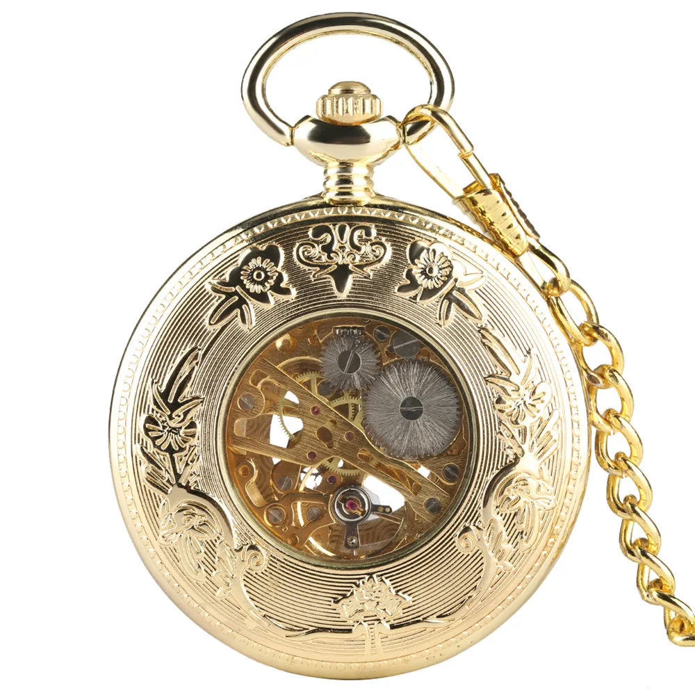Роскошные золотые полые автоматические механические карманные часы с цепочкой, красивые Fob часы для мужчин и женщин, ручные часы, подарки на день рождения