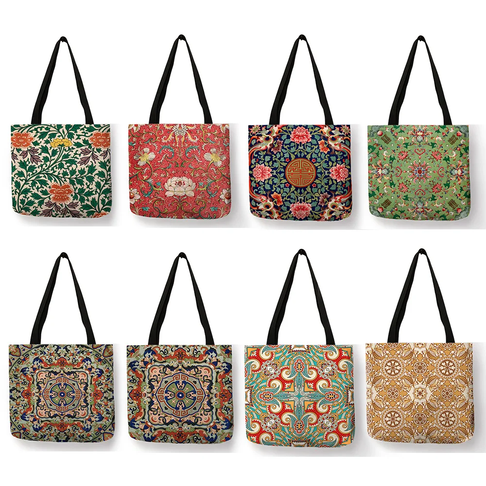 Изысканная красочная сумка с цветочным принтом, повседневная практичная женская сумка-тоут для покупок, дорожная пляжная уличная сумка