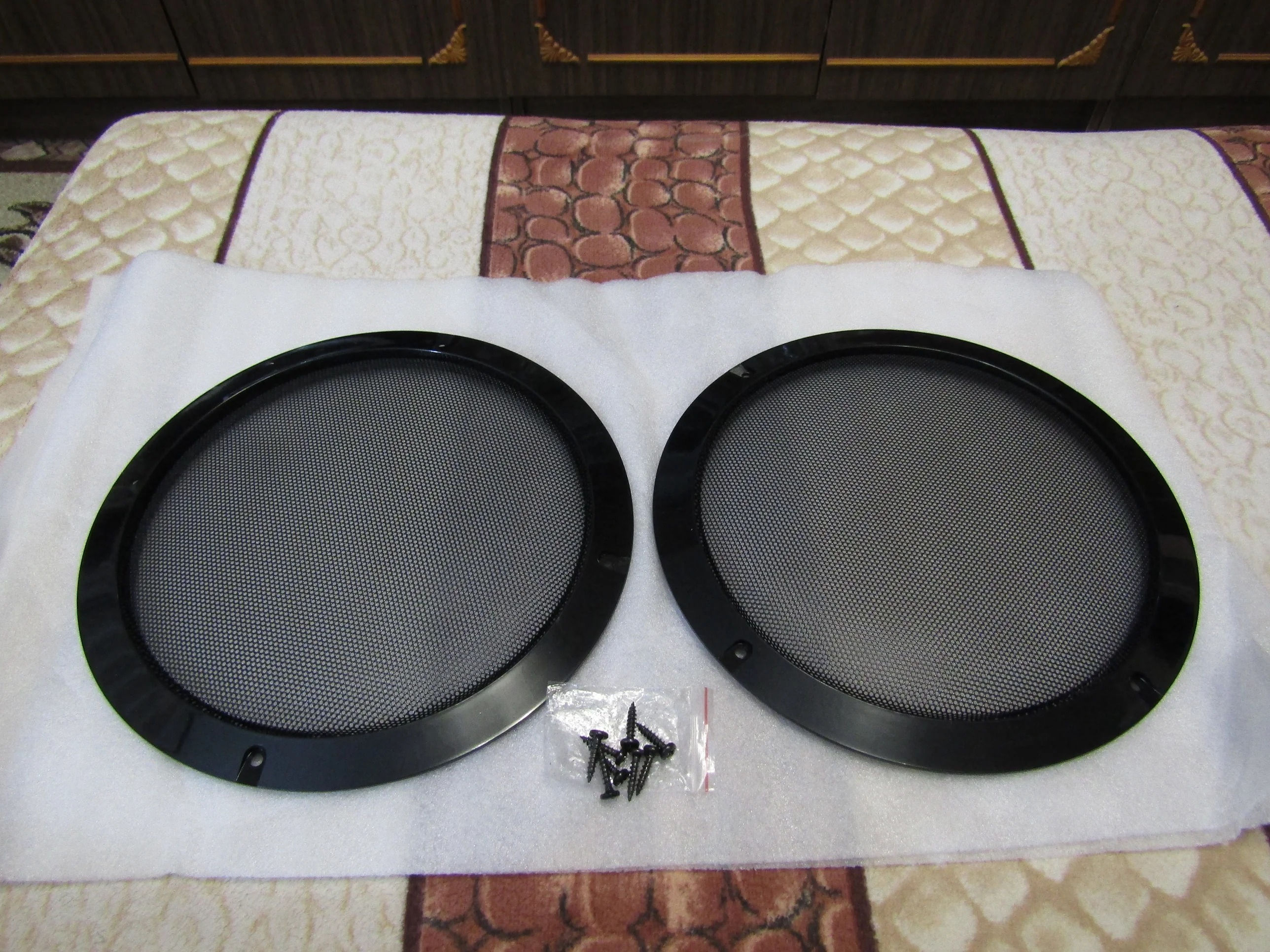 Декоративные решетки на динамики получил, спасибо. Заказ пришел в Саратовскую область за 21 день. Оперативно, быстро. Трек отслеживался. Одна решетка немного продавилась, но издалека не видно, не существенно, в комплекте 8 саморезов. Во время транспортировки немного помяли. Прикрепил к самодельным колонкам решетки. Все подошло ! Продавца рекомендую. Упаковывать просто надо лучше , чтобы заказ приходил целым и неиспорченным. Ставлю 5 звезд !!!
