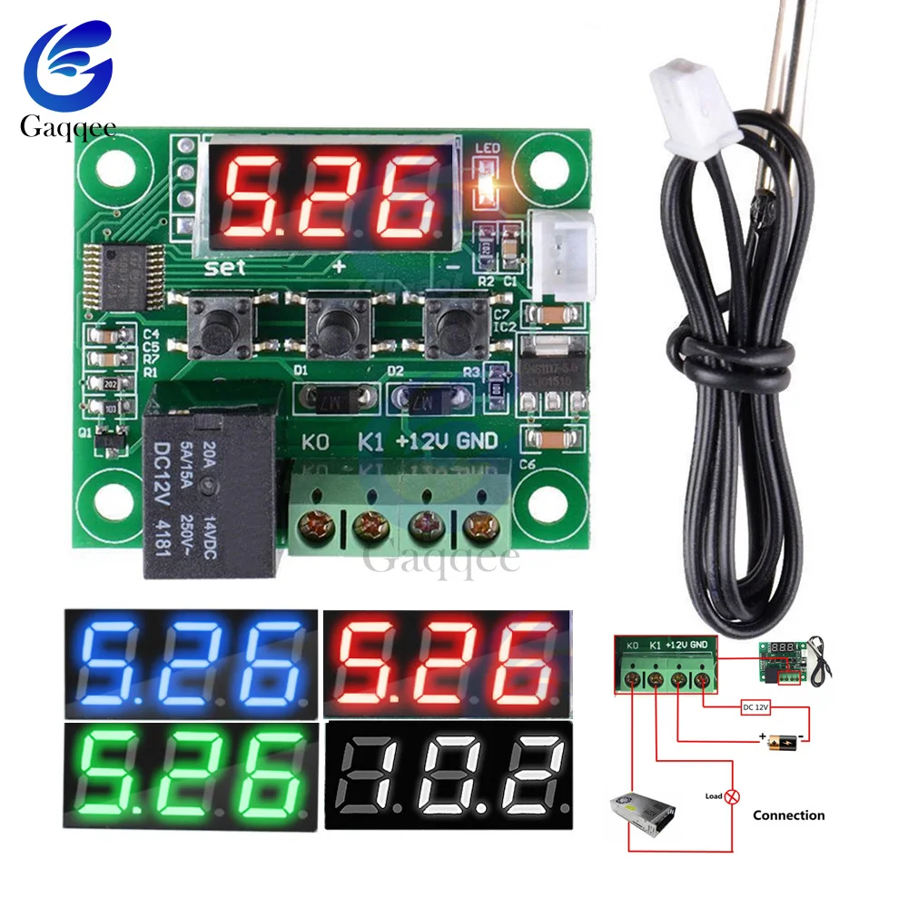 Характеристики:Диапазон температур:-30-110 °Размеры: 48,5*40 ммРежим контроля температуры: вкл/выклРазрешение: когда температура составляет 0,1 °, разрешение составляет-9,9 ~ 99,9, другой температурный сегмент составляет 1 °Точность управления: 0,1 °Точность гистерезиса: 0,1 °Частота обновления: 0.5SЗащита от высоких температур: 0-110 °Напряжение питания: 12 В постоянного токаСтатический ток: ≤ 35 мА, привлекающий ток ≤ 65 мАВыходное напряжение: 12 В постоянного токаВыходная мощность: Реле 20 АВход измерения: водонепроницаемый датчик NTC (10K 0.5%)