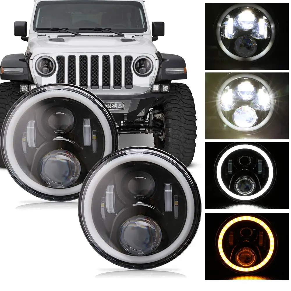2 шт. 7 дюймов светодиодный фар головного света с Halo Кольцо янтар...
