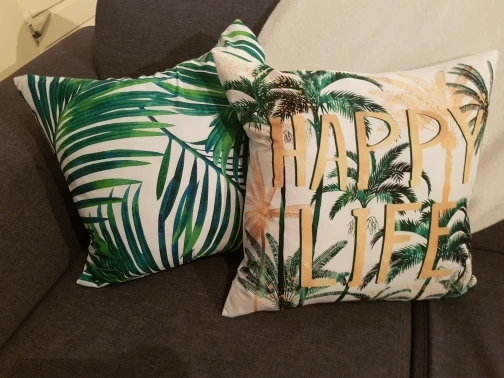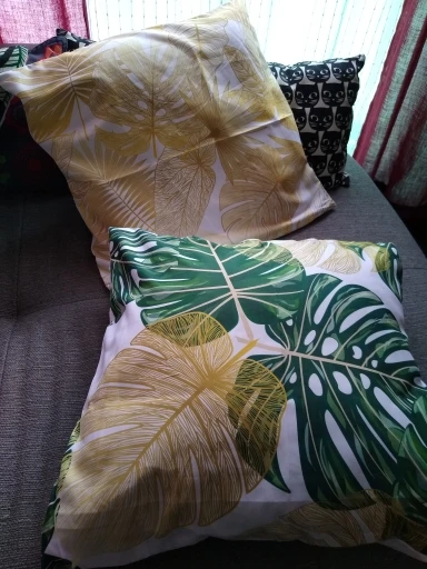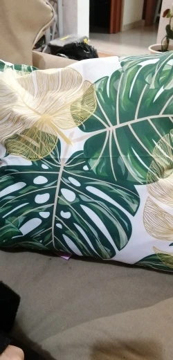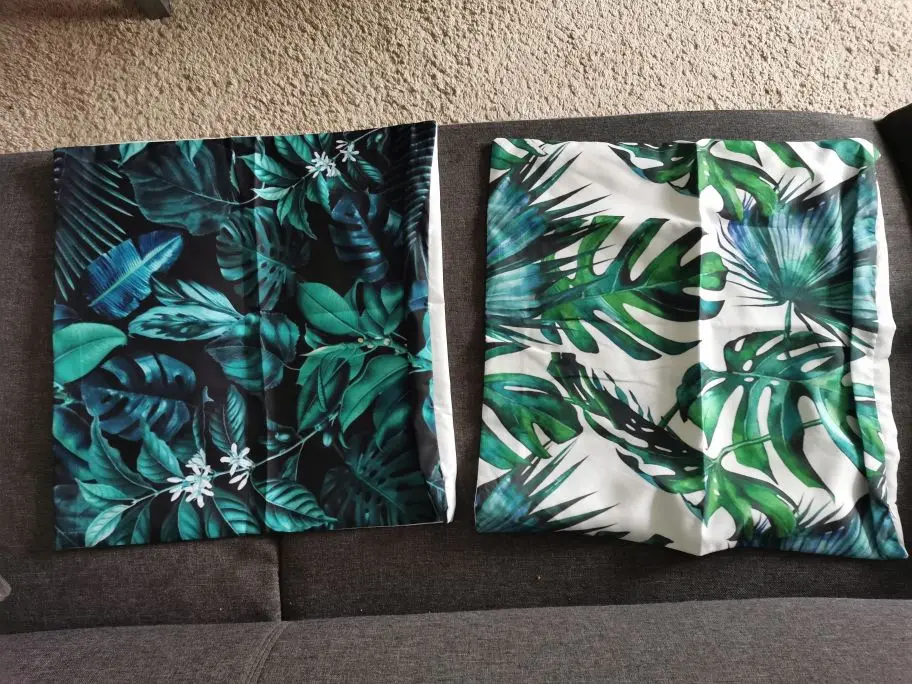 Чехлы на подушки выглядят отлично, мне очень нравится узор, он быстро прибыл во Францию. Я заказал 2 одинаковых рисунка, проблема только в том, что на одном из чехлов, угол не напечатан с рисунком, он белый, как на задней части чехла. Не очень хорошо видно.