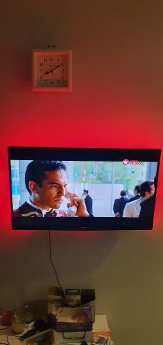 Сначала мне показалось , что какое то все игрушечное, пультик , лента , страшно брать в руки)) не поняла как открыть пульт , чтобы вставить батарейку , потом оказалось легко , получилась. Батареек нет в комплекте, в магазине от 150 р у нас , я заказала 4 ленты . Вставила провод в телевизор , приклеила ленту , супер , красота . Но 2 м на диагональ 43 малова-то , 3 м надо , на нижнюю часть телевизора не хватило. Цвета яркие , переключаются отлично, запоминает последний цвет. Красота .