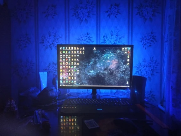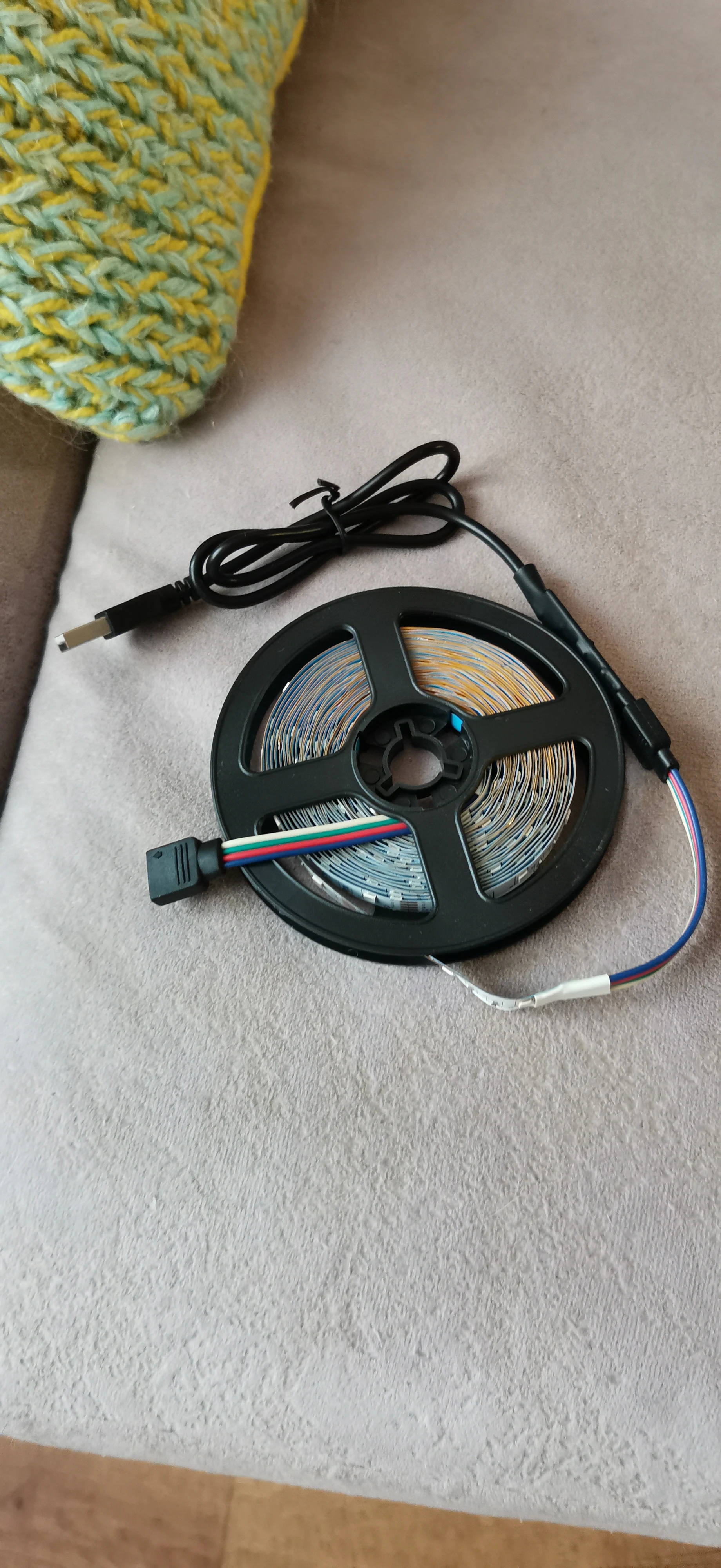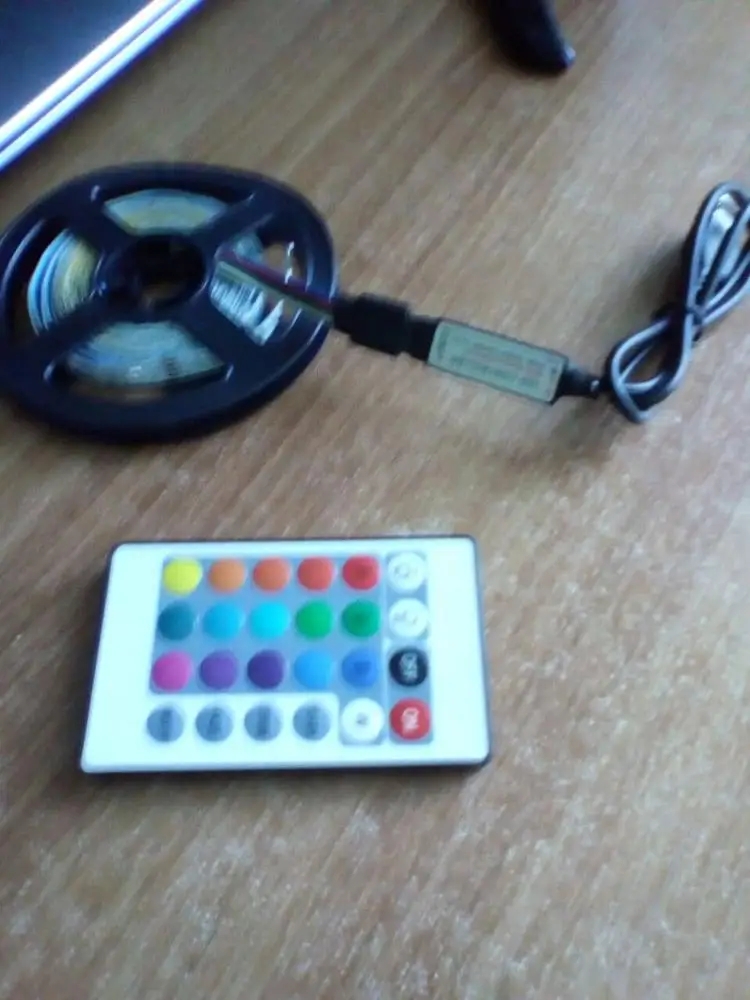 разьем на самой ленте слабый, в руках разваливается. провод усб короткий. будет работать, если у вас на мониторе есть усб вход, а так удлинитель пришлось покупать. пульт работает только если направлять на ленту, а так как лента за телевизором или монитором, то край этой ленты (где датчик) надо выносить на открытый участок Батарейка в пульт в комплекте не идет. сам пульт приложил картинку. ну и готовый результат. в целом все работает, если подключить и не трогать. сама лента очень липкая, хорошо держит. спустя 20 минут работы нисколько не нагрелась