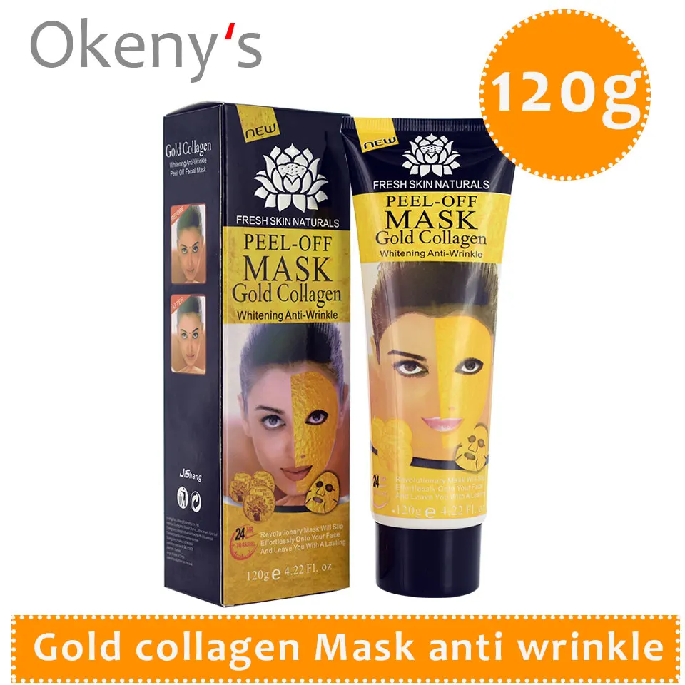 24K Золотая коллагеновая отшелушивающая маска для лица, пудра, против старения, против морщин, роскошное спа-лечение, увлажнение, отбеливание, 120 г, уход за кожей