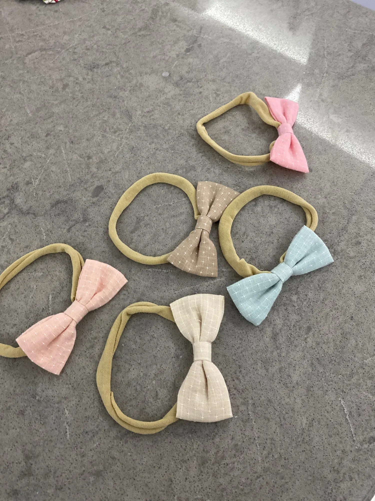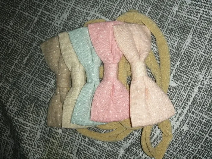 Бантики отличного качества, подойдут не только на новорождённого ребёнка, но и на 6-7 месяцев, резиночки хорошо тянутся, материал резинки капрон, поэтому натирать они не будут.