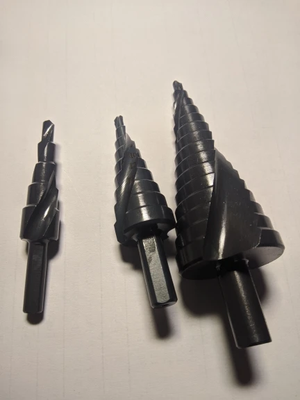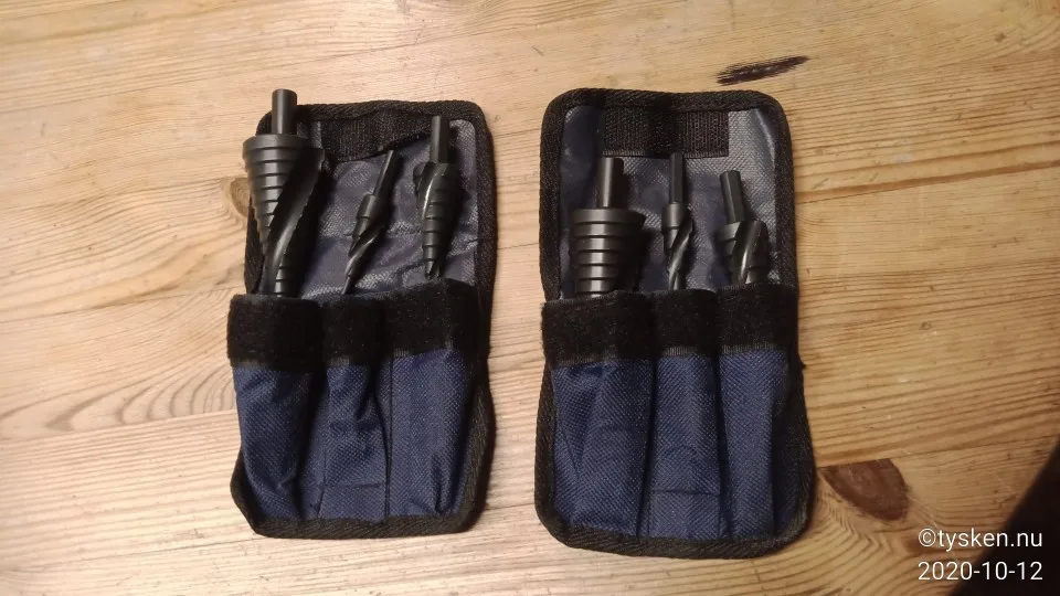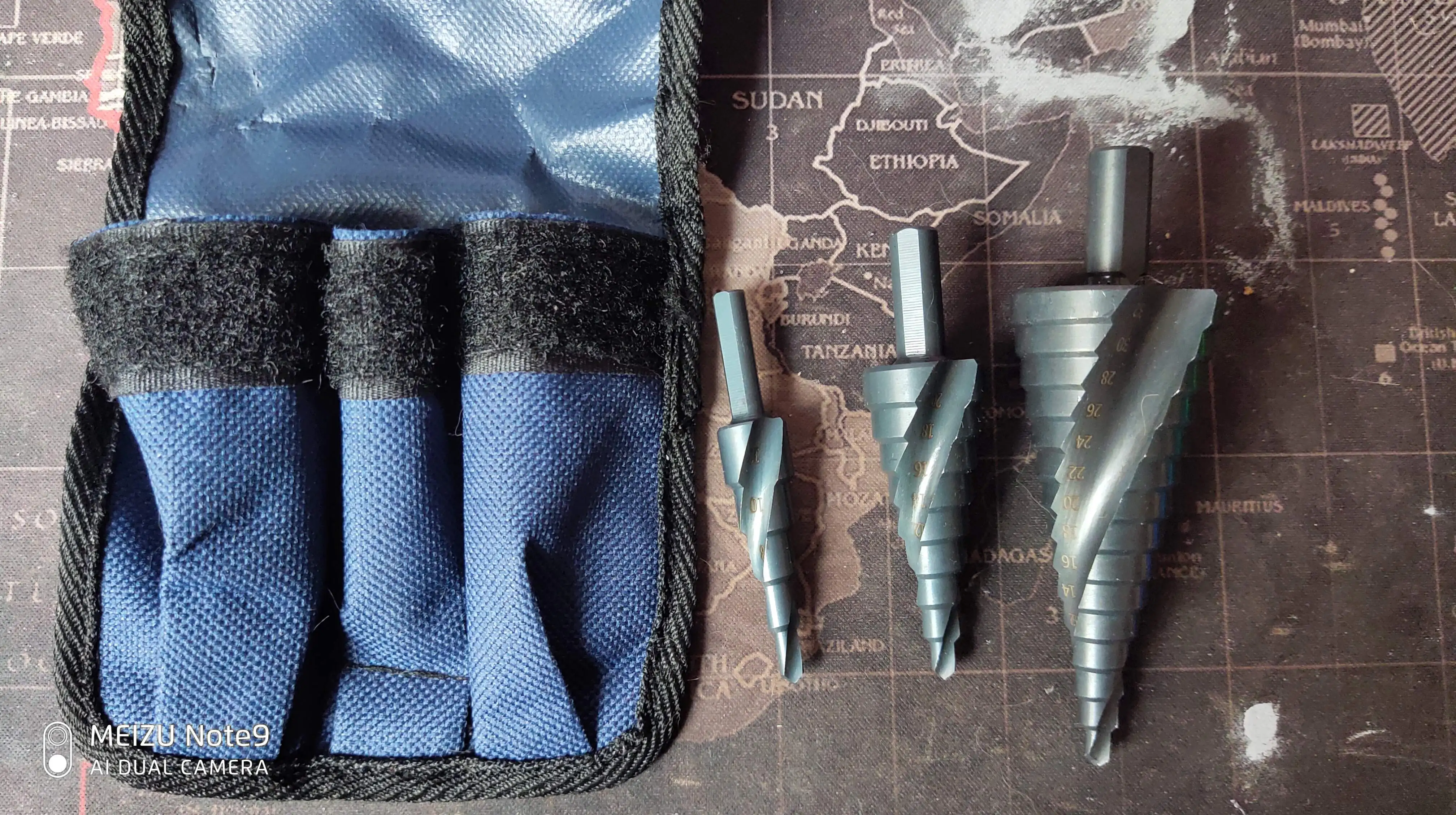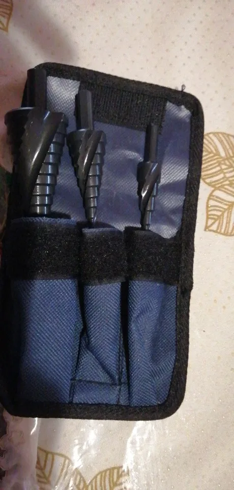 Я из Мексика, и продукт пришел быстрее, чем ожидалось. Это именно то, что вы просите, это Три конических сверла в тканевом чехле. Они выглядят как игрушка или пластик, пока вы не почувствуете сверло в руках. Прекрасно сверлила деревянные, пластиковые и тонкие металлические поверхности, я не пробовал их с металлическими поверхностями с широкой толщиной.