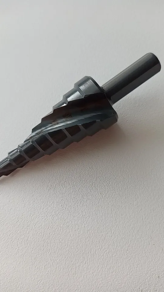 сверло дошло за три недели. упаковано в контейнер от сверла диаметром 20 мм.,поэтому первая ступень торчала из упаковки.рассверлил отверстие до 14 мм. без проблем,но всё покрытие как написано нитридное стёрлось.да и на кобальт не очень похоже.но может я ошибаюсь