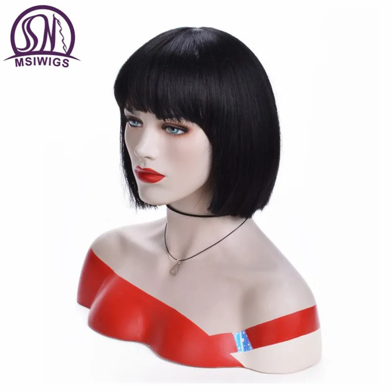 MSIWIGS Bob волосы черные короткие парики для женщин прямые синтетические волосы парик с челкой пепельно-серые волосы Термостойкое волокно