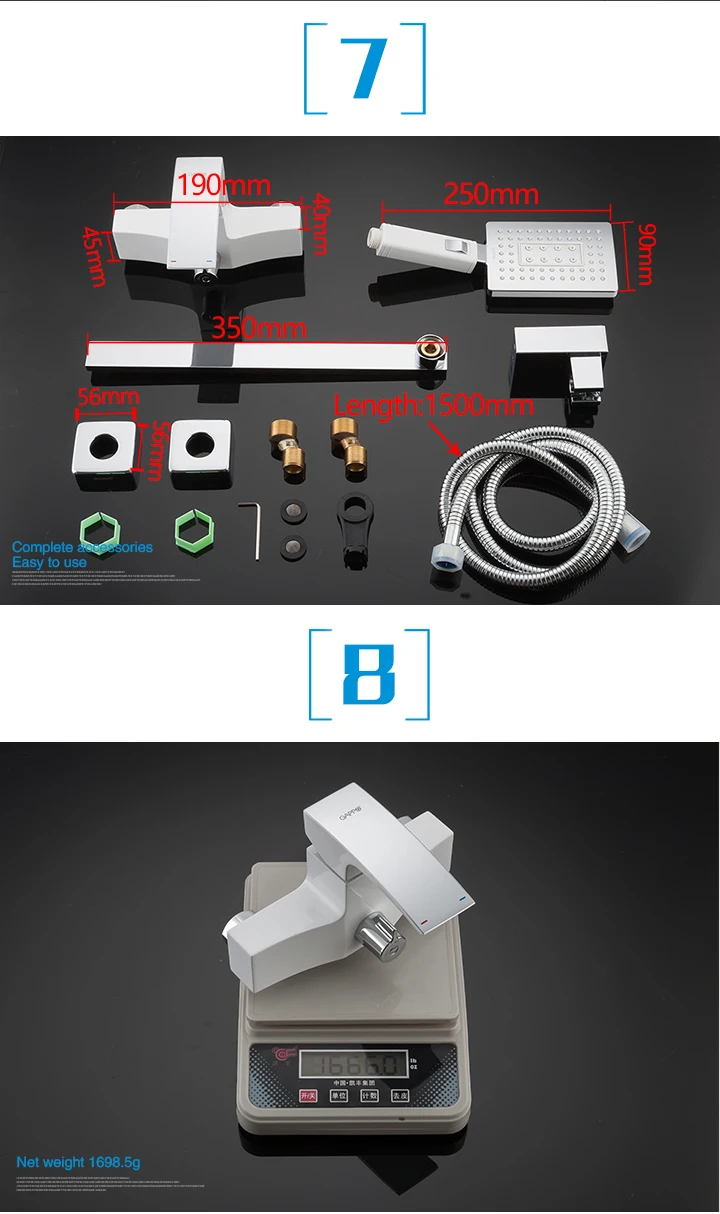 Все в точности как на картинке. что упаковка, что инструкция и все бумаги на русском. Качество . Единственный минус это пластиковый держатель для душа - уж слишком хлипкий.