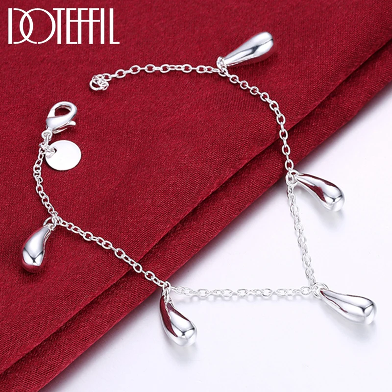 DOTEFFIL 925 стерлингового серебра Капли дождякапли воды подвеска браслет для женщин очаровательные свадебные помолвки модные ювелирные изделия для вечеринки