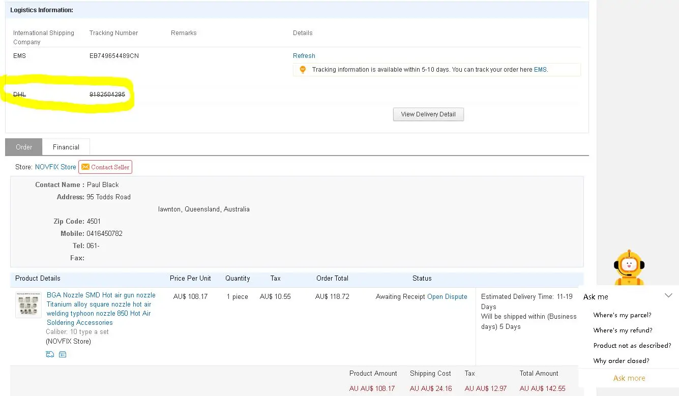Товар хороший, продавец не очень хороший, поставляется поддельный номер отслеживания DHL, а затем вместо доставки через DHL они отправили мой заказ через EMS, который является очень медленным методом доставки, EMS, как правило, экспресс, это то, что означает E в EMS, Стандартная доставка Aliexpress гораздо быстрее, Подумайте дважды о покупке у этого продавца,