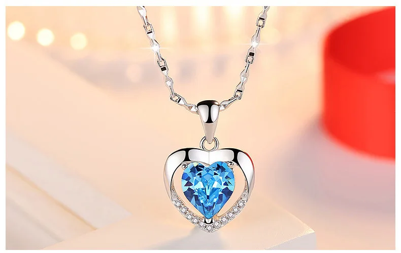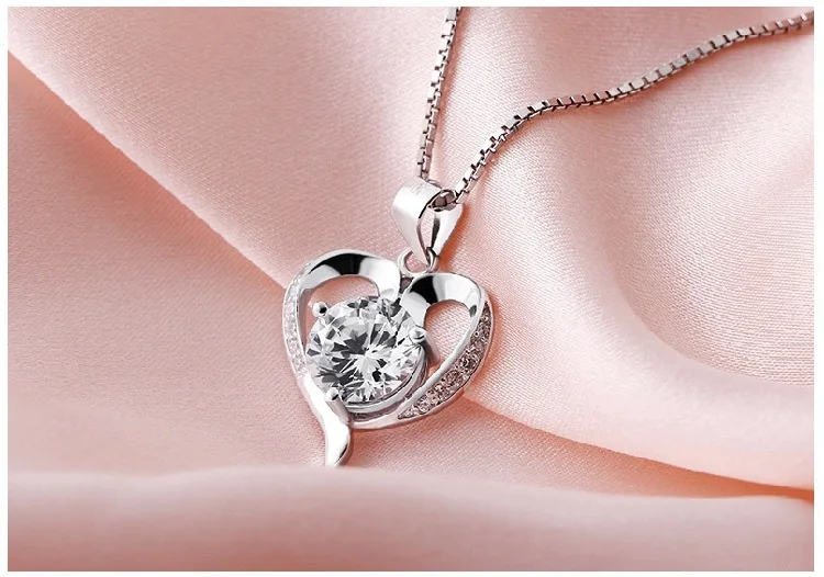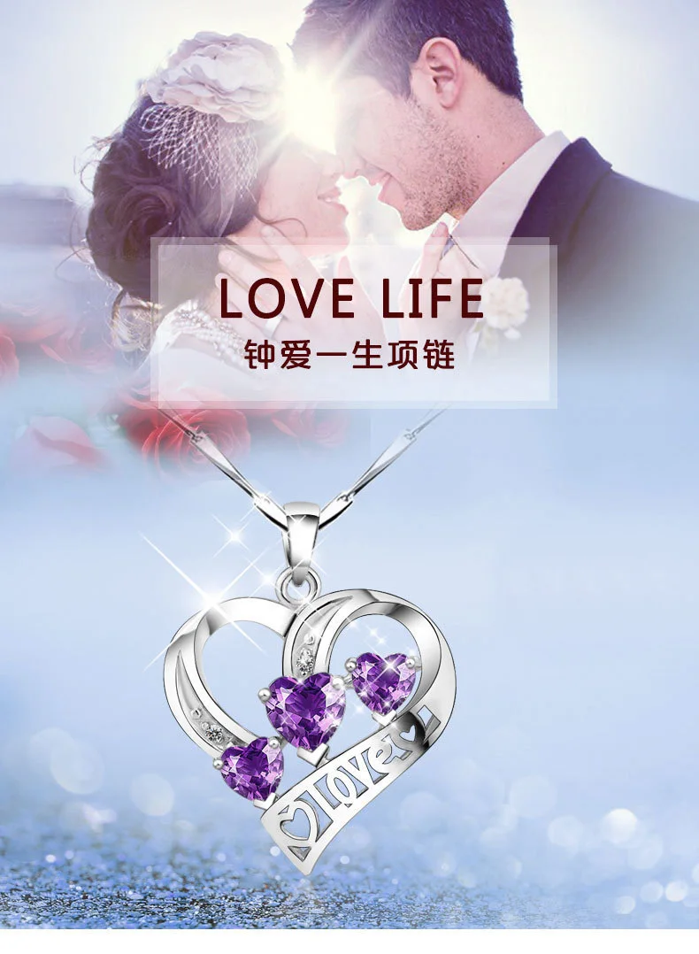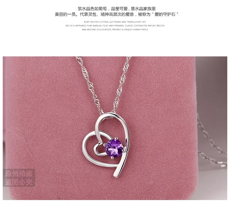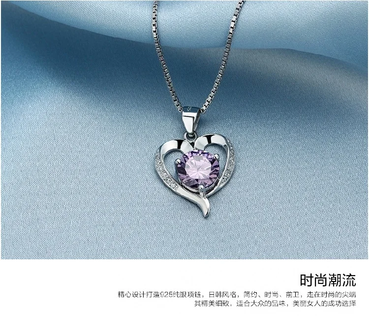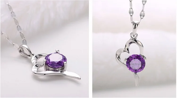 Подвеска в виде сердца, из стерлингового серебра пробы с белым и фиолетовым цирконием, ожерелье, Подвеска для женщин, украшения без цепи, подарок D27