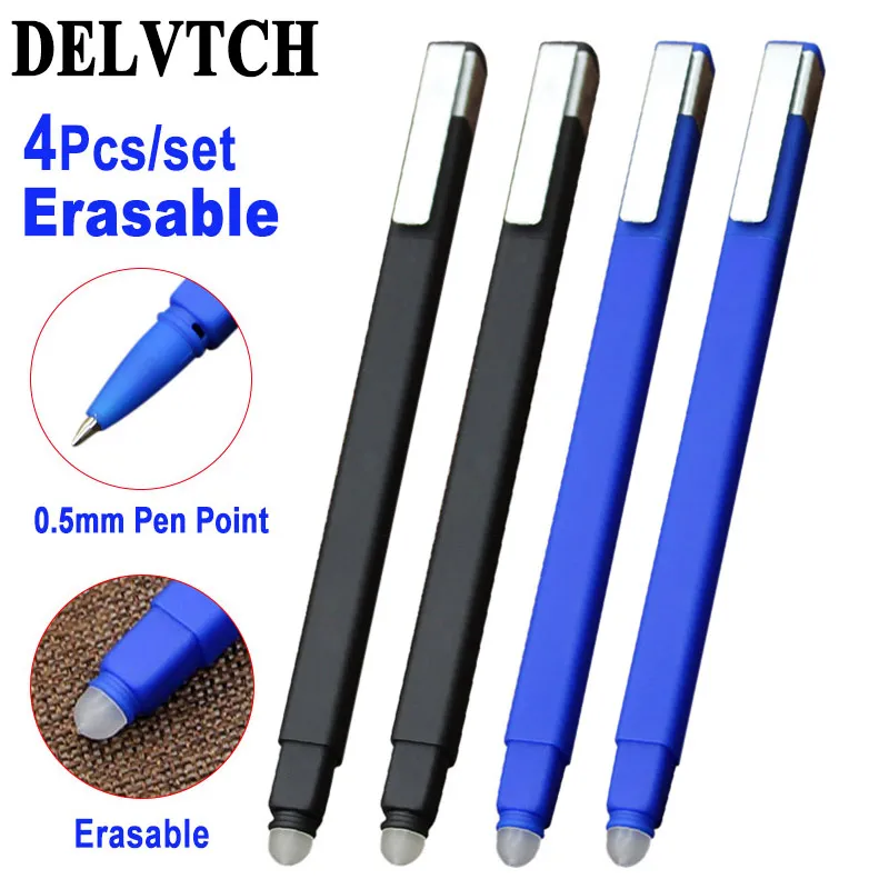 DELVTCH 4 шт.компл. со стирающимися чернилами гелевая ручка 0,5 мм цвет синий, черный; Большие размеры пополнения чернил пулевой наконечник для офиса школы и плавность линий канцелярские моющиеся ручка