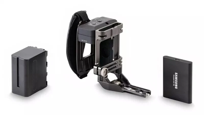 Эта Боковая ручка скользит на основание половинной и полной наклона клетки камеры. Порт аккумулятора в нижней части ручки позволяет использовать батарею Sony F970 для питания Nano мотора ядра через выход питания Micro-USB 8V. Выход постоянного тока 12 В также интегрирован в ручку. Ручка также имеет встроенный держатель для карт Samsung T5 SSD.