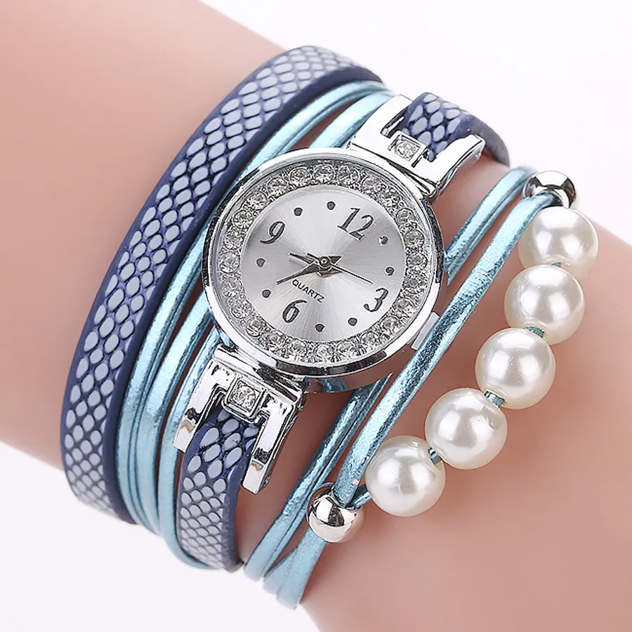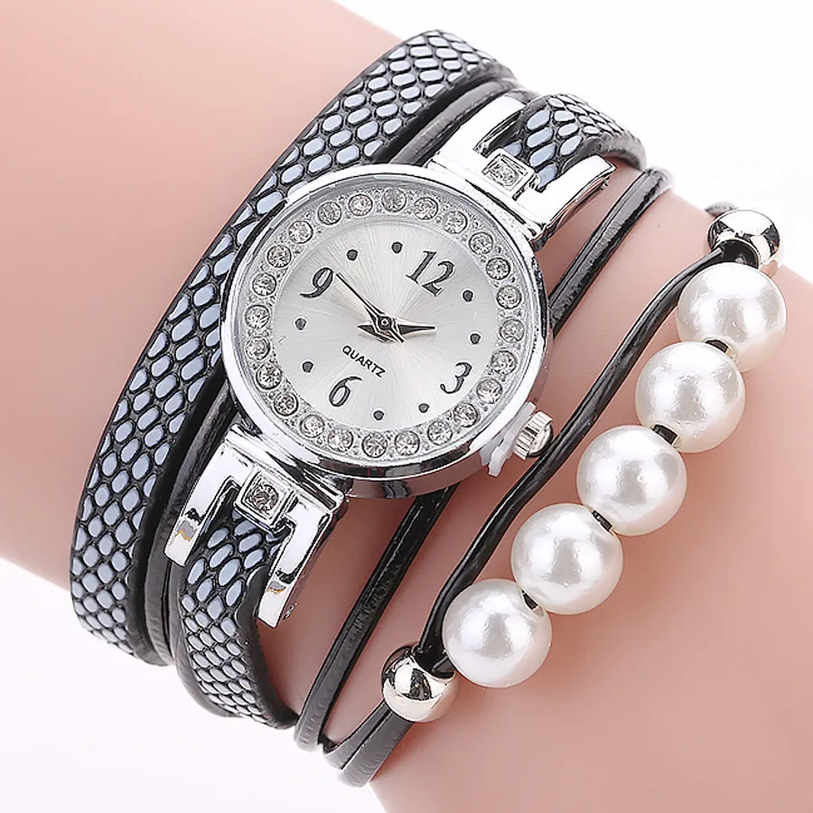CCQ женские модные повседневные аналоговые кварцевые часы с крыльями из горного хрусталя и жемчугом Браслет Роскошный принт полоса часы для женщин