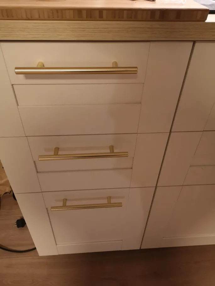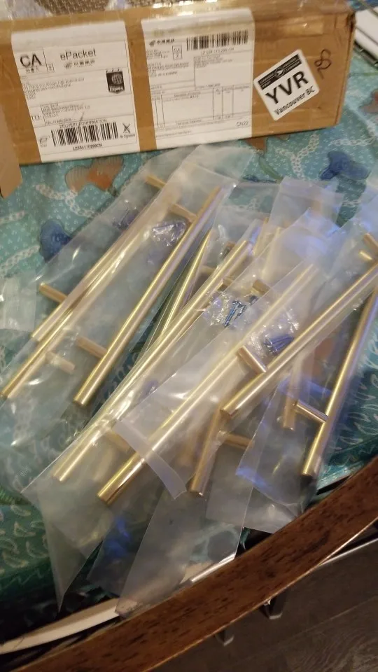 Как оказалось купить простые золотые ручки, без вензелей и прочей ерунды в Одессе просто нереально. Пришлось заказывать на Али, доставка около 2 недель на отделение НП. Качество неплохое, но достаточно легкие (полые внутри). Смотрятся прилично, цвет золота не яркий. Буду заказывать и на остальную мебель их же