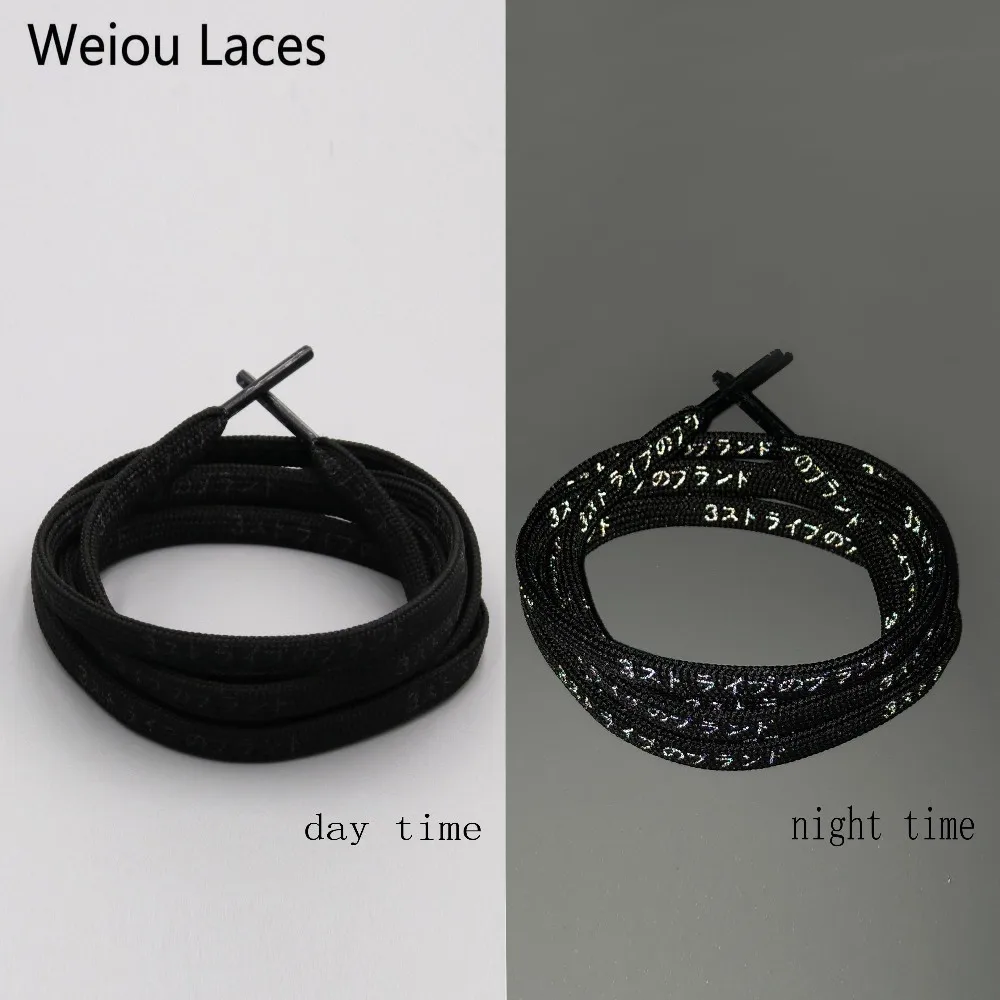 Weiou 7 мм плоские милые с буквенным принтом 3 м отражающие японские шнурки kakaana Kanji пластиковые шнурки с напечатанными кончиками для спортивной обуви Рождественский подарок для UB/NMD поддержка Прямая доставка