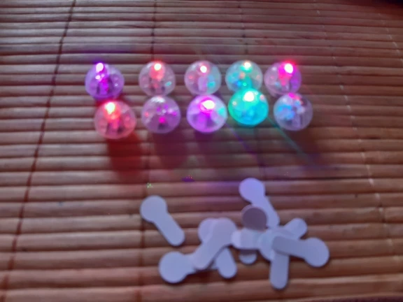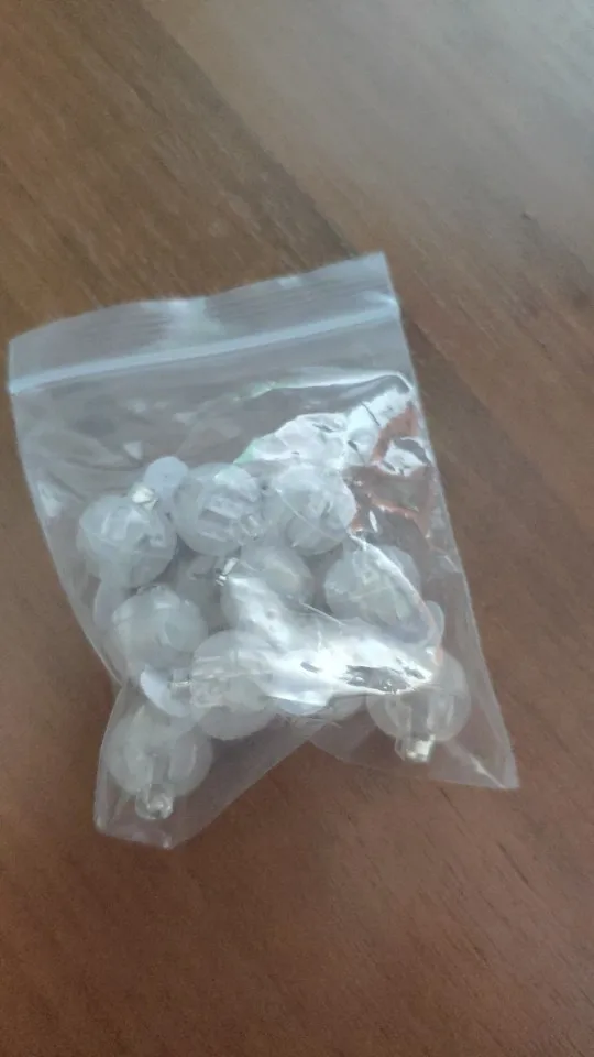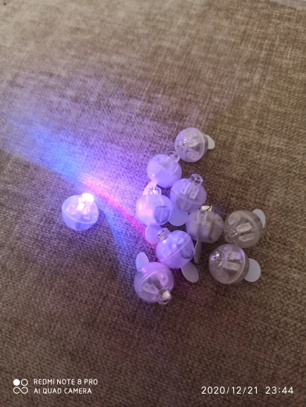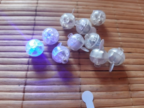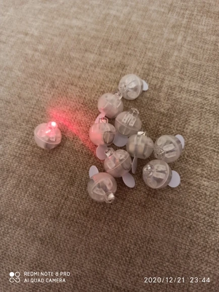 Товар не отслеживался, но прибыл на месяц раньше заявленного срока. Шарики размером с сантиметр, изготовлены из качественного пластика с двумя батарейками внутри. Чтобы включить шарик, нужно вынуть из него хвостик, а чтобы выключить - вставить обратно. Шарики мигают разноцветными цветами, к сожалению нельзя изменить режим мерцания, но тем не менее они понравились. Камера не смогла сфокусироваться на цветах, но они насыщенные и яркие. Если знаете где их можно применить, то однозначно рекомендую к покупке. У меня они просто лежат на подоконнике включенные когда хочется праздничного настроения))