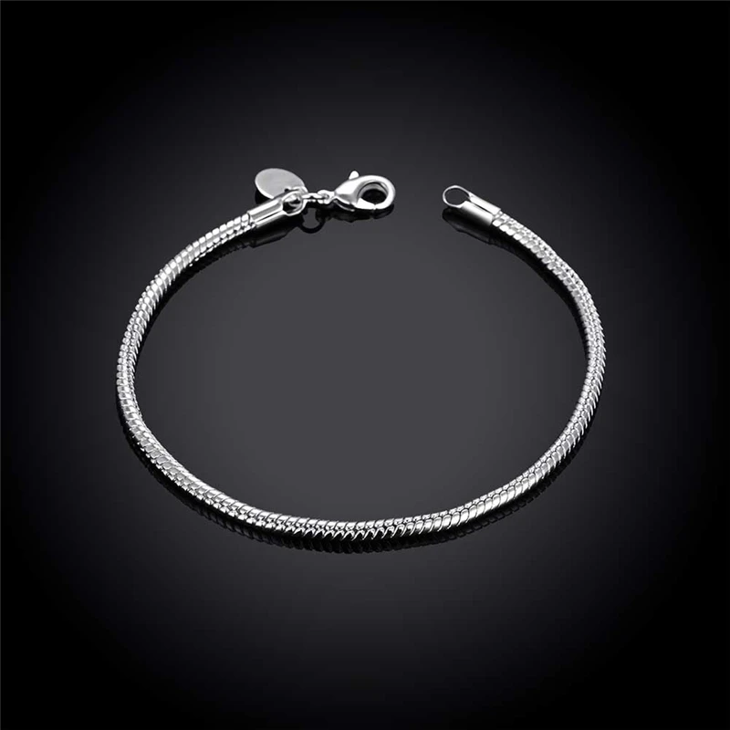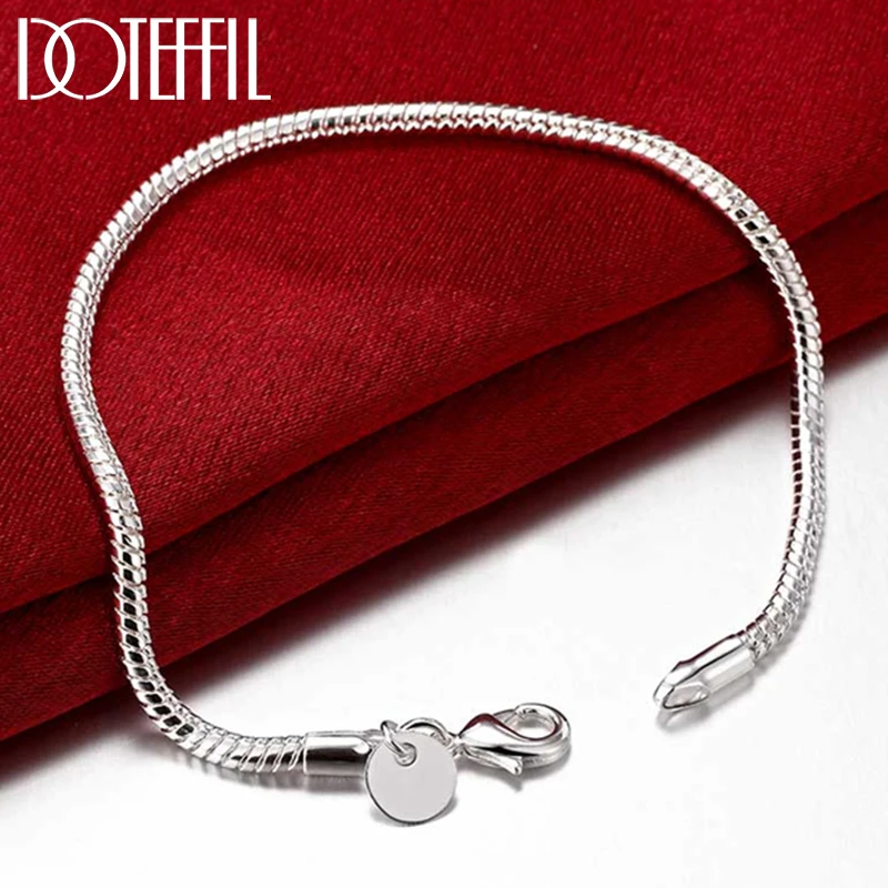 Женский цепочка-змейка DOTEFFIL, браслет из стерлингового серебра 925 пробы, 8 дюймов, 3 мм