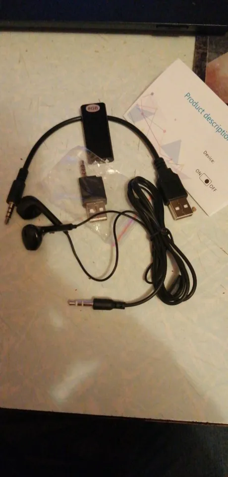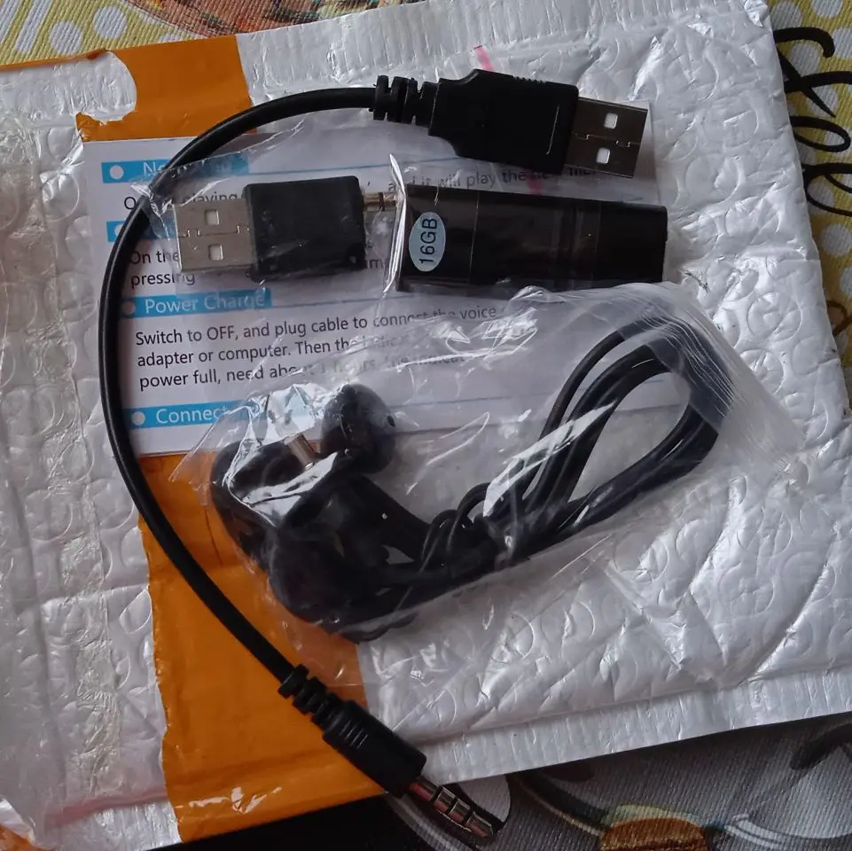 Посылка была отработана и отправлена через 30 минут после заказа, доставка очень быстрая. Продавцу respect за это. Всё приехало целое и комплектное. Наушники очень простые и очень тихие, в общем никакие. Запись только в формате wav. Думаю лучше сразу брать на 16 гб, так как формат wav очень "тяжелый" . В целом за свои деньги это 7 из 5.