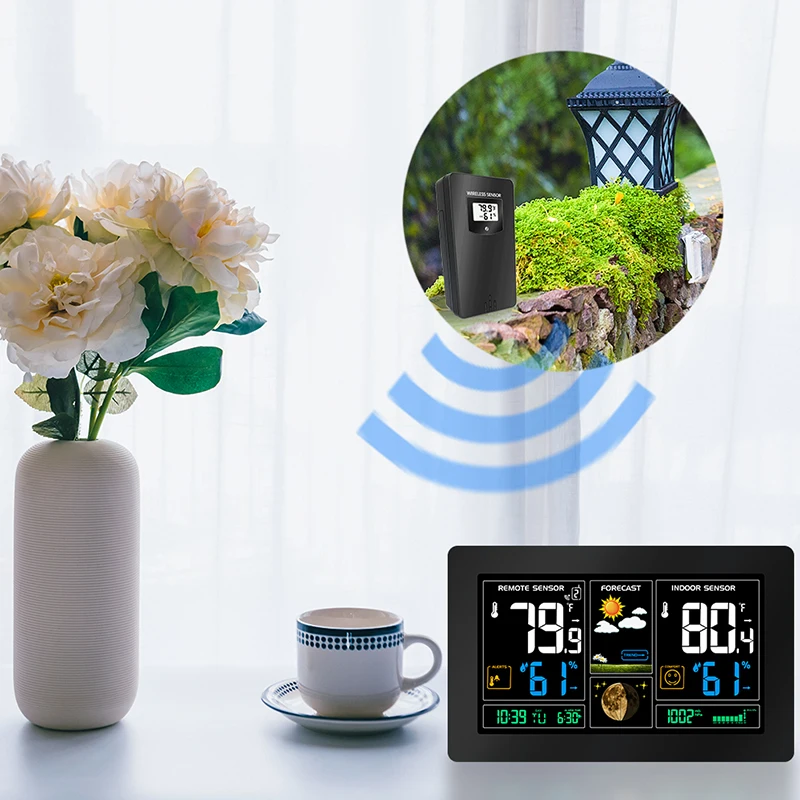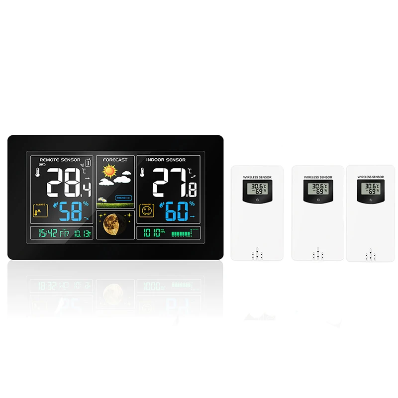 3 наружных датчика Беспроводная метеостанция цветной ЖК-дисплей Температура Влажность