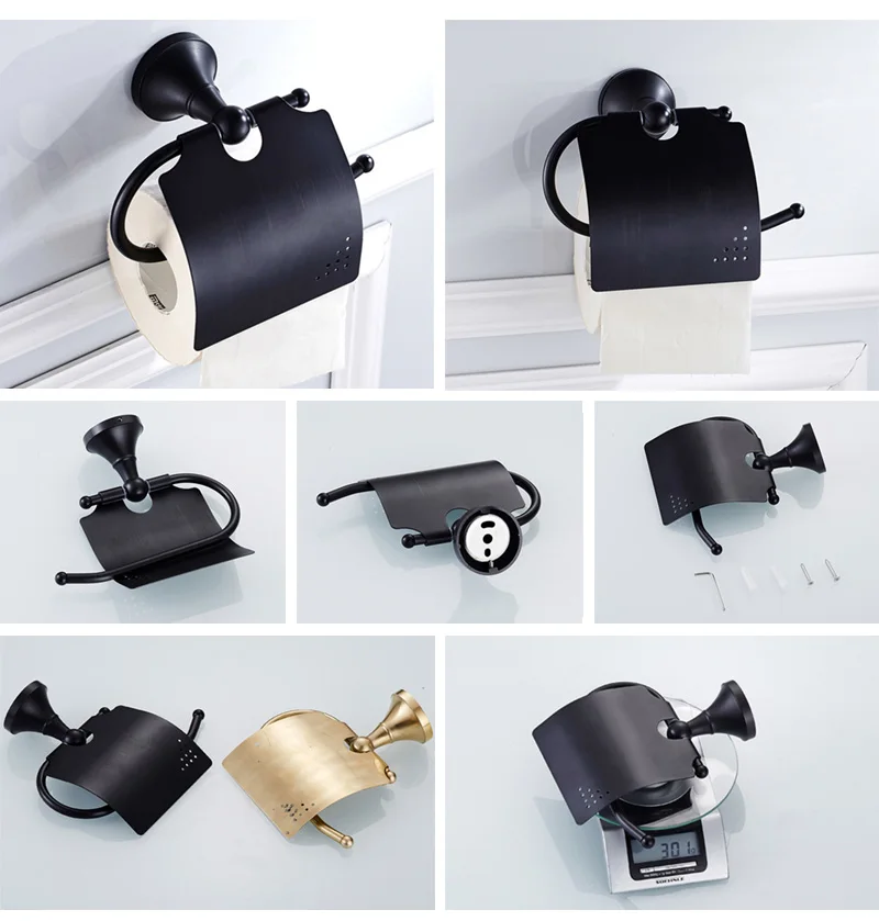 Набор аксессуаров для ванной комнаты, черная настенная стойка для фена, держатель для бумажных полотенец, держатель для щетки для унитаза, оборудование для ванной