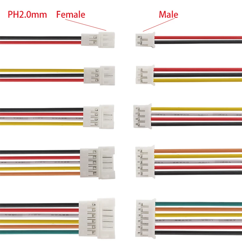 10pcs 15cm JST1.25 PH2.0 XH SM2.54 2P3P 4P 5P 6P Male Female Plug Butt-joint Aerial Docking Crimp Terminal Wire Cable Connector