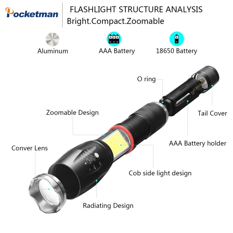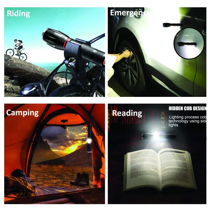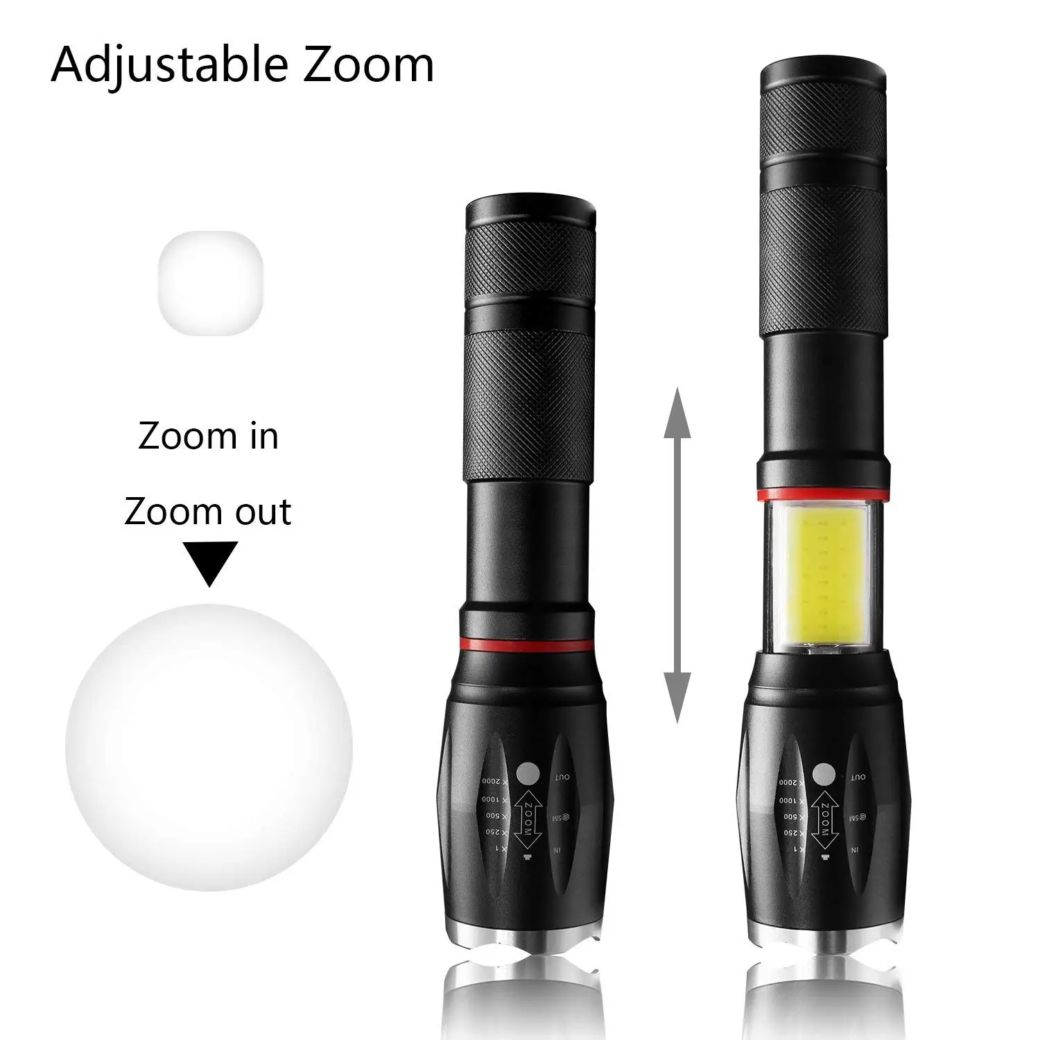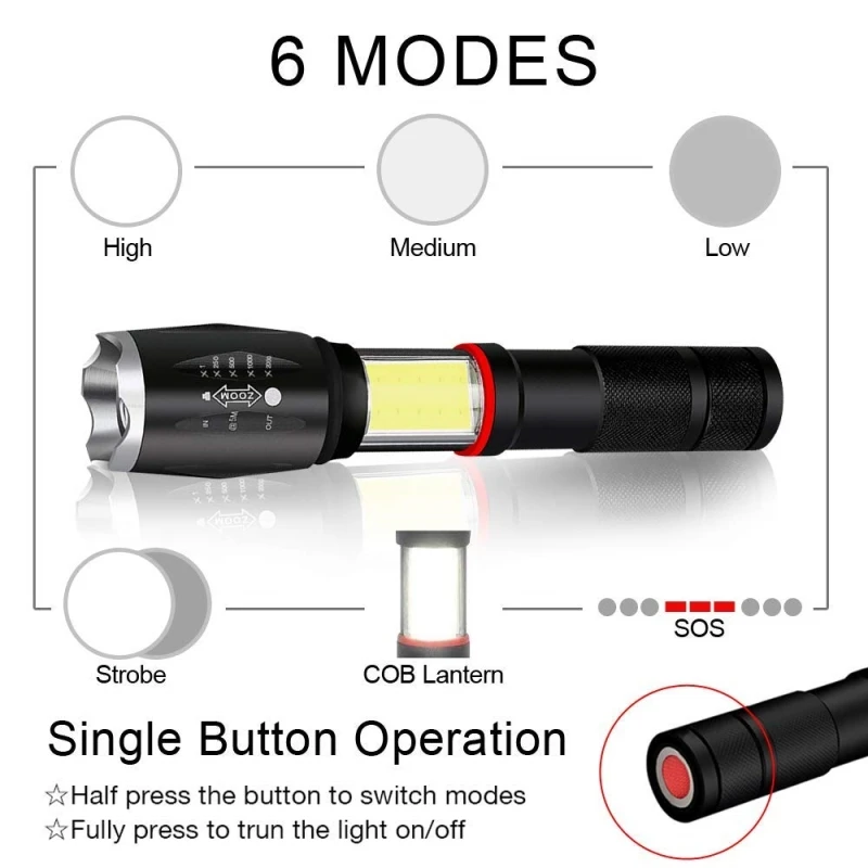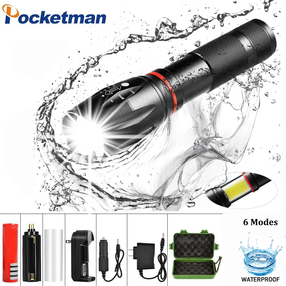 Светодиодный фонарик XML T6 + COB, 6 режимов, 18650 лм